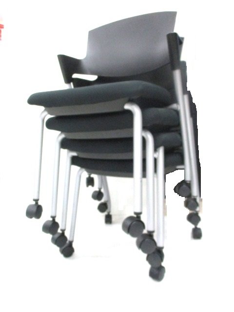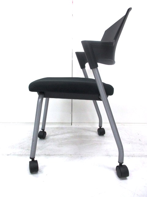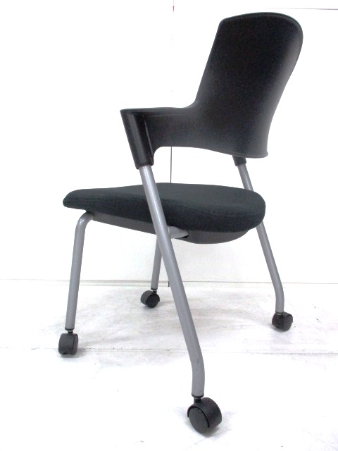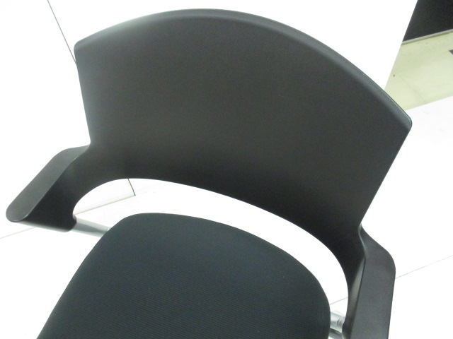 【シンプルスマートなスタッキングチェア!分厚いクッションで長時間でも快適な座り心地!】■スタッキングチェア 肘付ミーティングチェア ■固定肘 ■キャスター付 ■ブラック ■背面樹脂/コクヨ(KOKUYO/プロッティ
