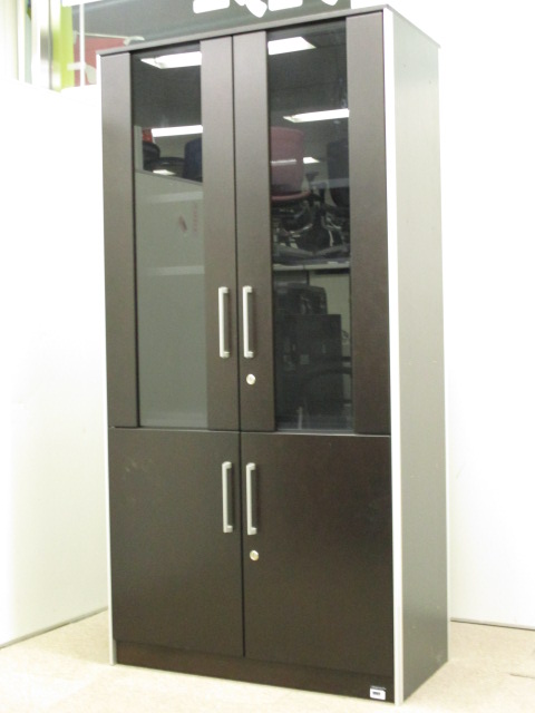 【限定1台美品】【役員室にオススメ!】ブラウン調のガラス両開き書庫!【定価40万以上!!】- 在庫数