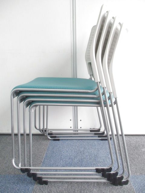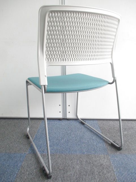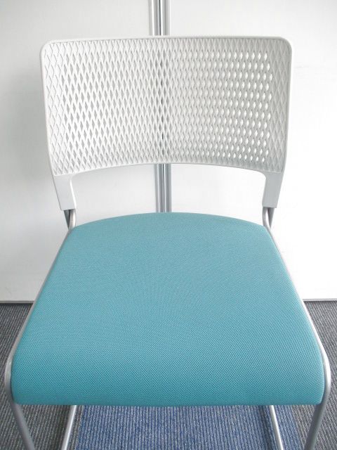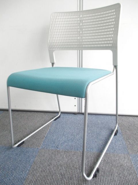 【通気性抜群な会議チェア】重ねて収納でき便利【爽やかなアクアブルー】- 千葉店