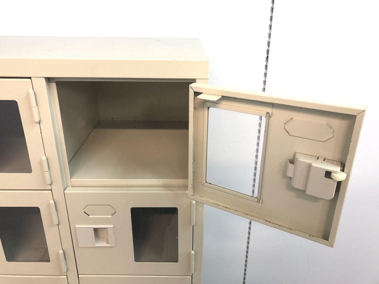- 一部不具合あり扉の開閉不可、施錠不可といったそのロッカーの本来の効用を果たすための機能以外の一部が使用不可な状態※扉の開閉がしづらい等がある。