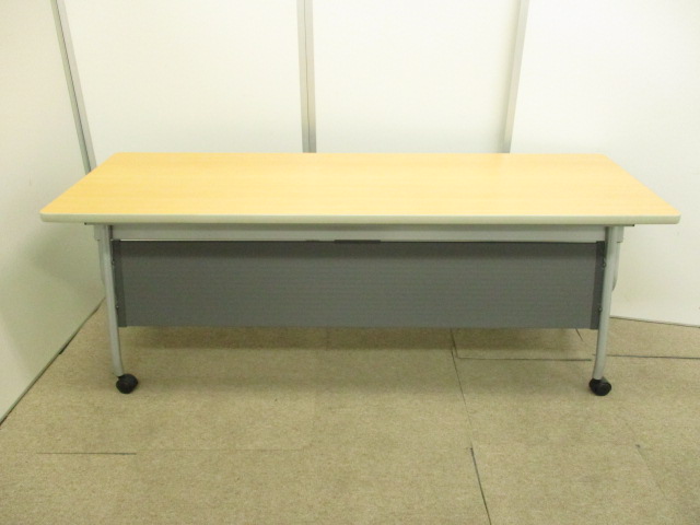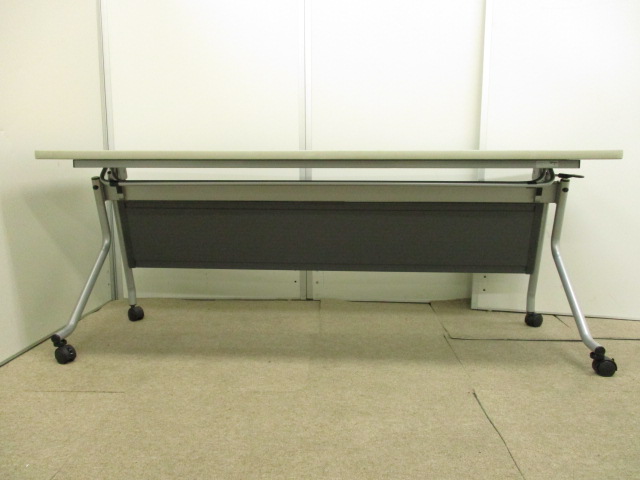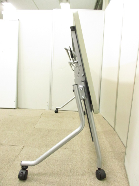 【会議室の必需品!!】セミナー等でも台活躍!!キャスターで移動もスムーズ!!天板を畳んで収納可能なスタックテーブル!!【幕板付!!】- 在庫数
