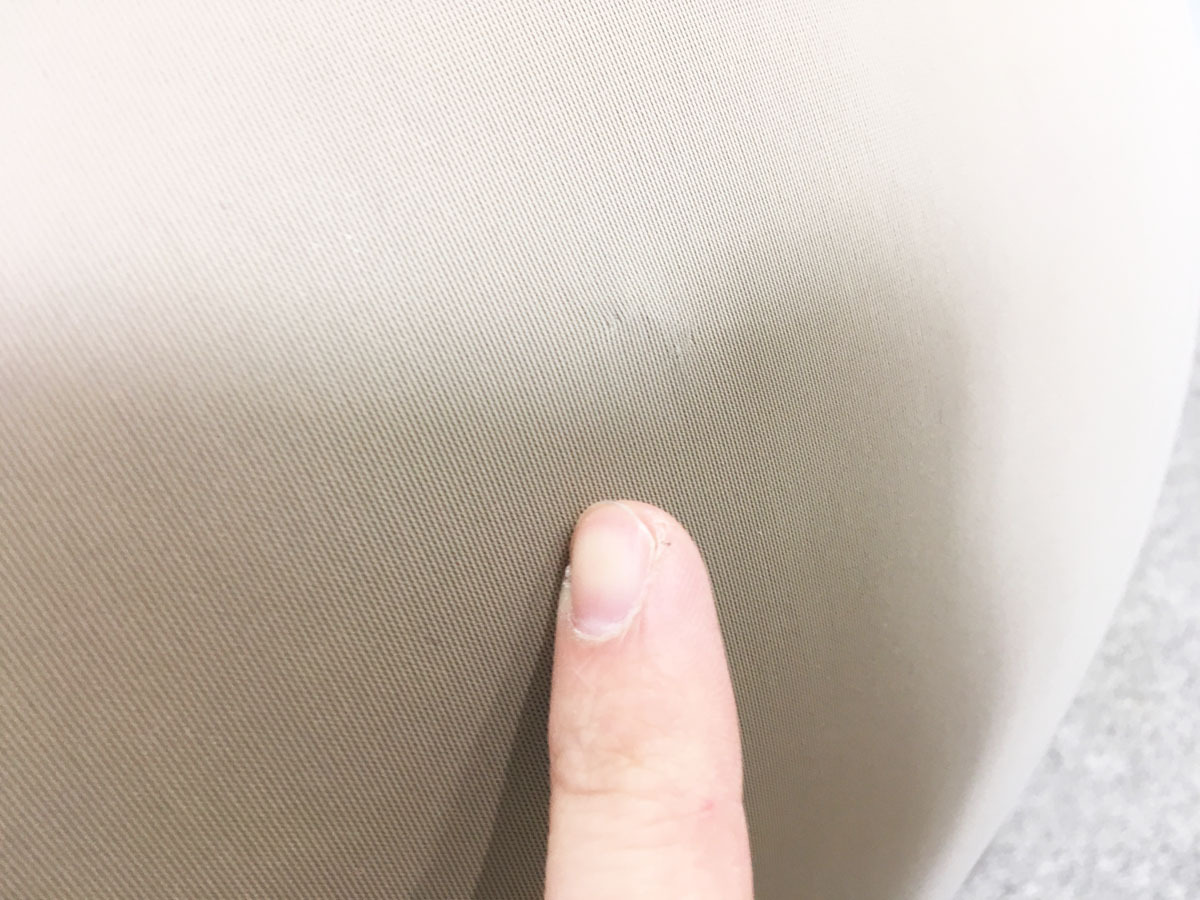 座面に薄い汚れシミ、目立つ毛羽立ちがあります。