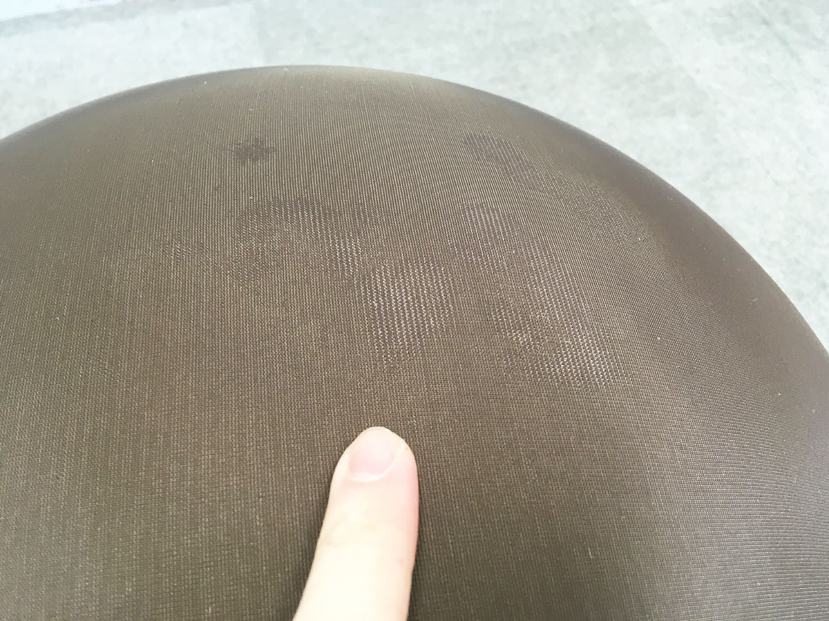 座面に薄い汚れシミ、目立つ毛羽立ちがあります。