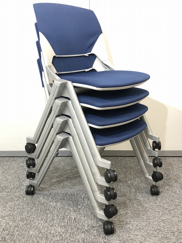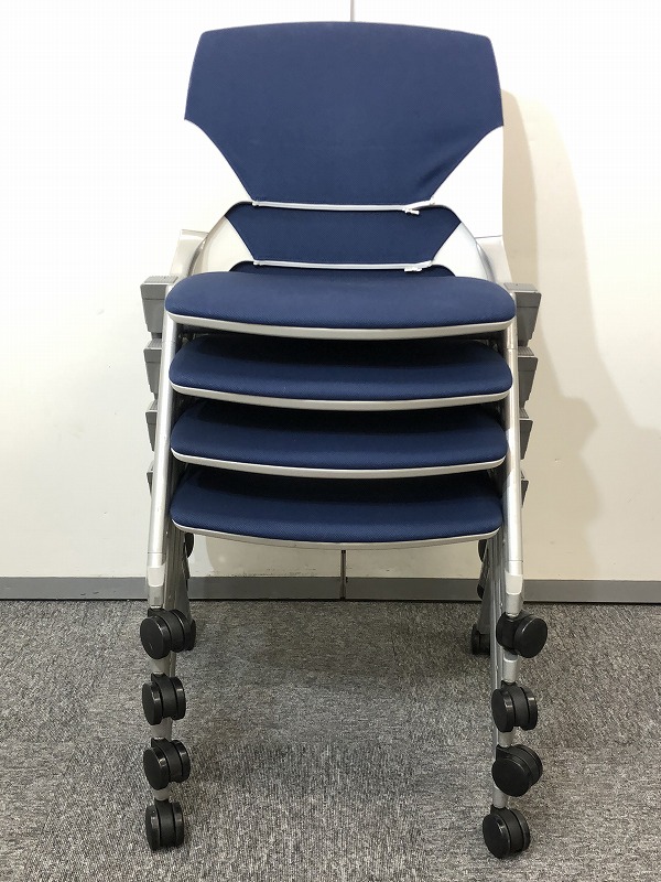 【平行収納、重ねての収納どちらも可能な珍しい仕様のミーティングチェア!】■ウチダ(UCHIDA)製 FM-320シリーズ スタッキングチェア ネスティングチェア 肘無し キャスター付 ■ダークブルー【AD】