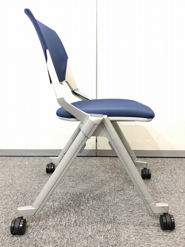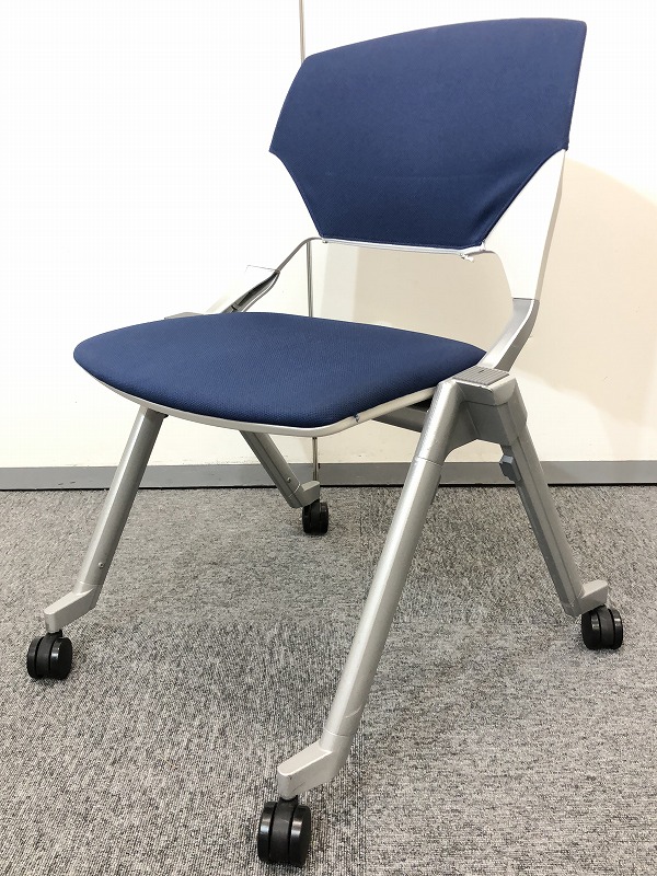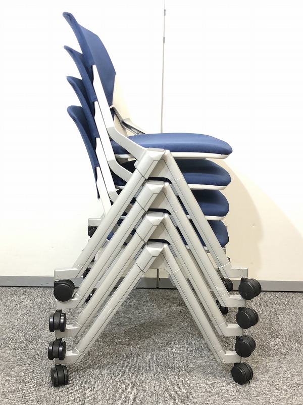 【12脚入荷!】内田洋行製スタッキングチェア|2018年製|キャスター付で移動もらくらく! 中古 ネスティング可能 ブルー ロット 会議室 【倉庫在庫品】
