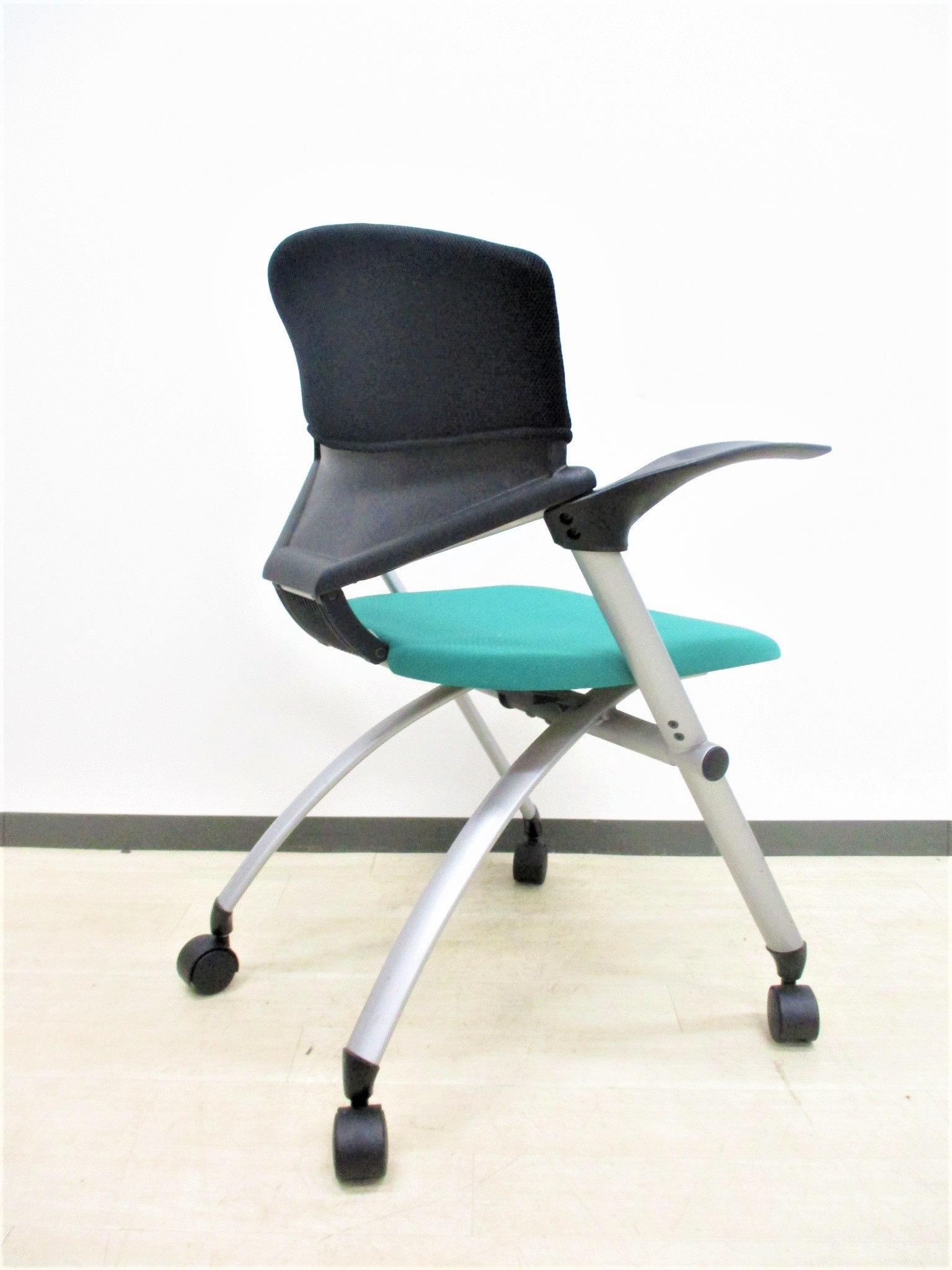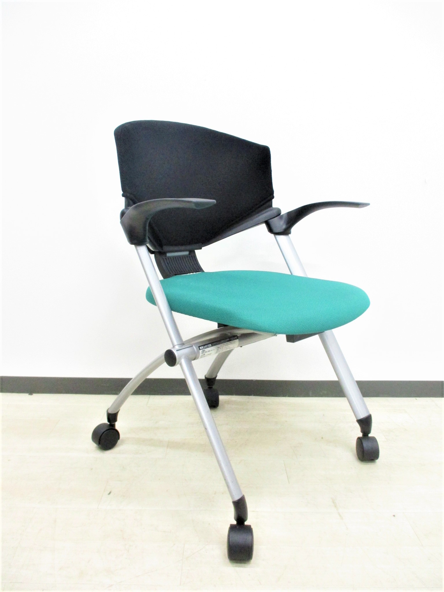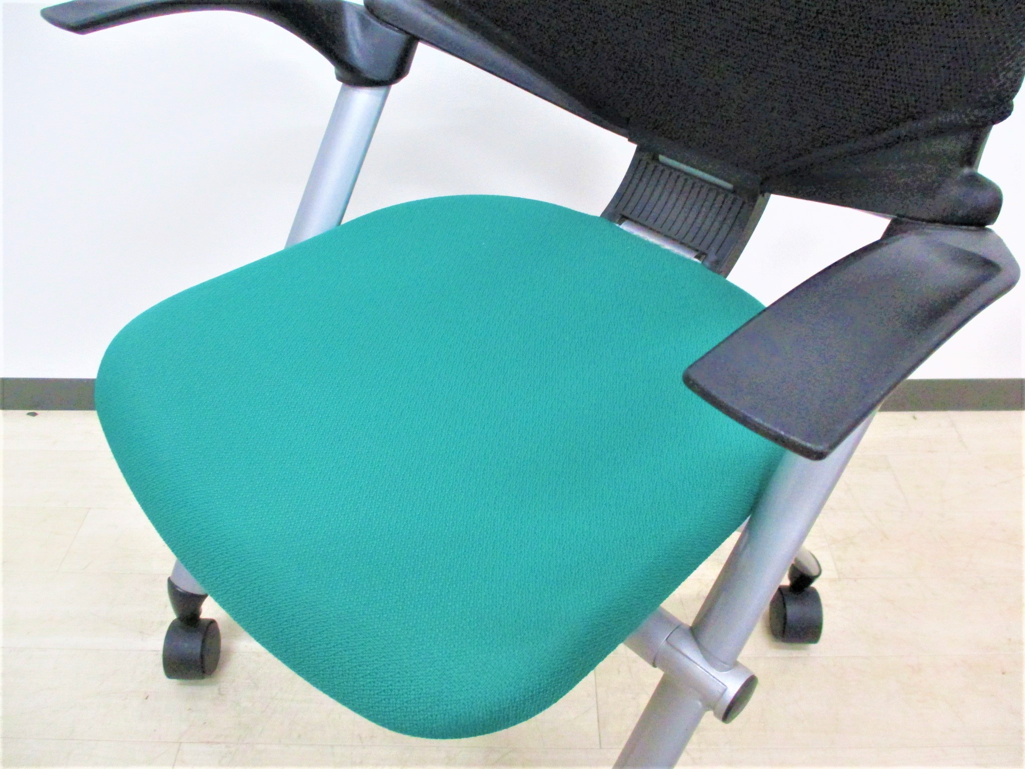 【12脚入荷!】人気シリーズ!綺麗なグリーン!肘付きで座り心地の良いミーティングチェア‼- つくば店