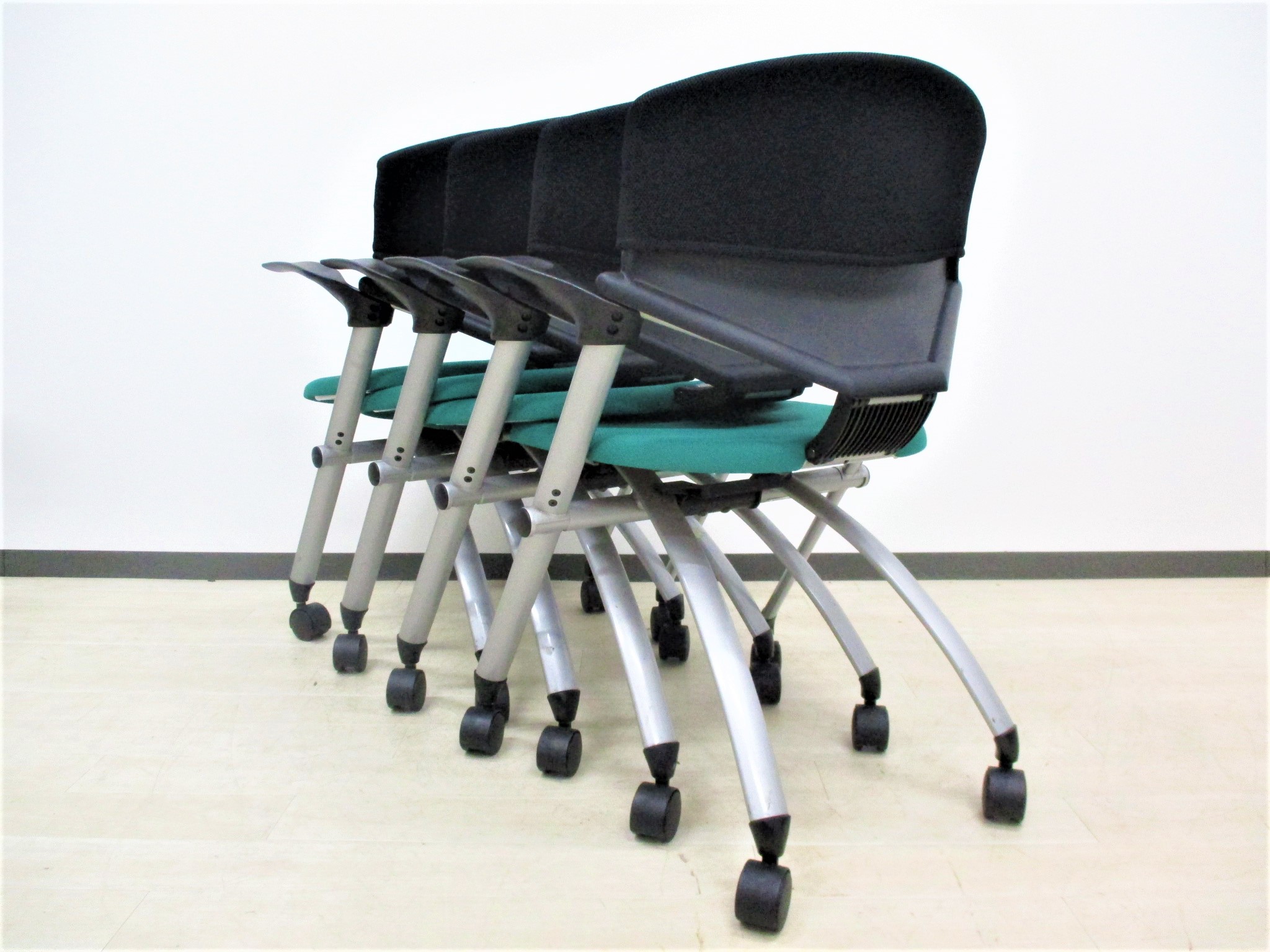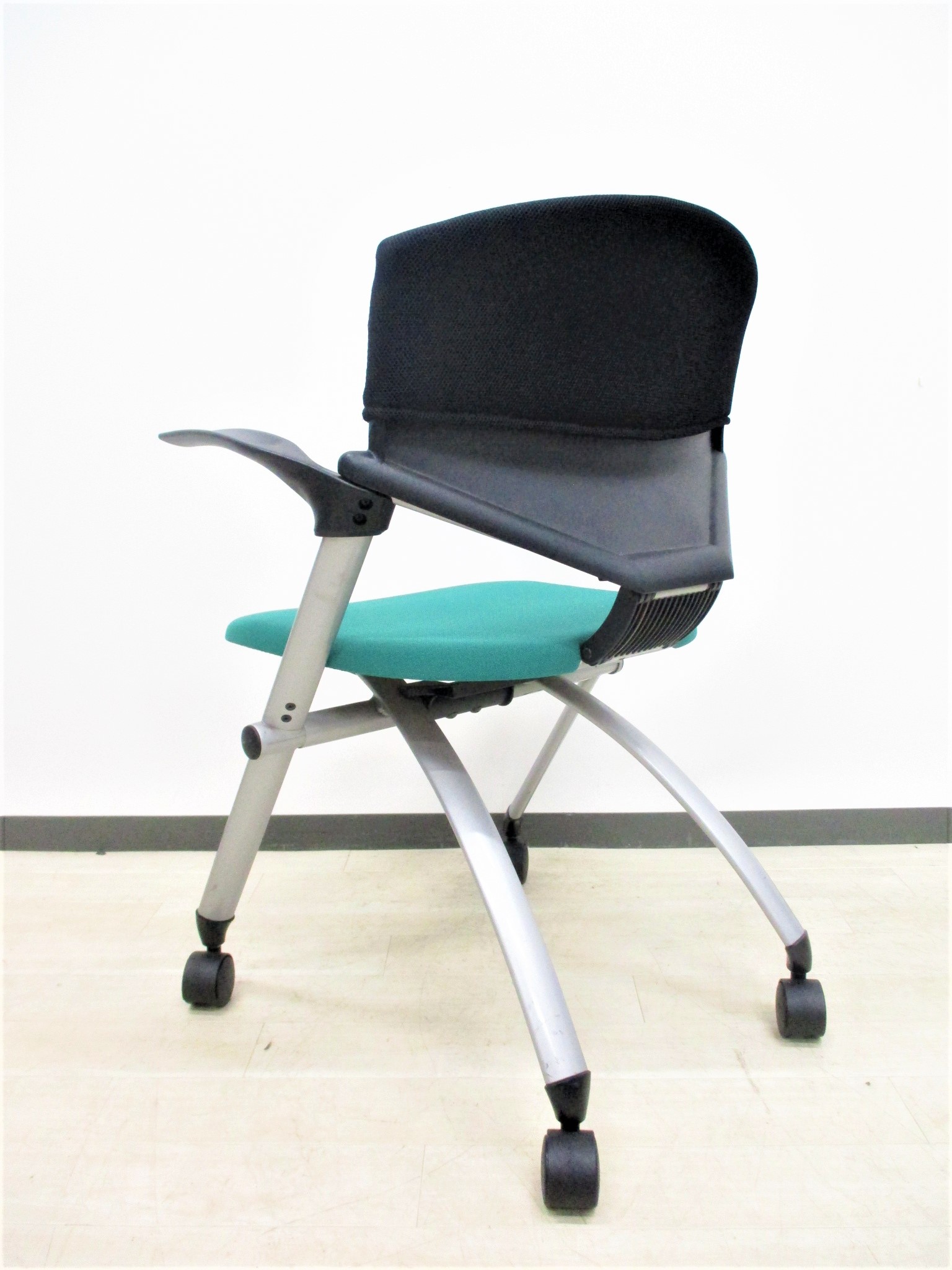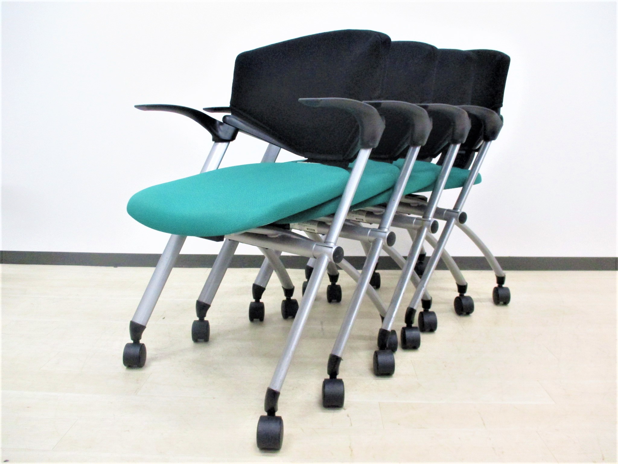 【12脚入荷!】人気シリーズ!綺麗なグリーン!肘付きで座り心地の良いミーティングチェア‼- つくば店