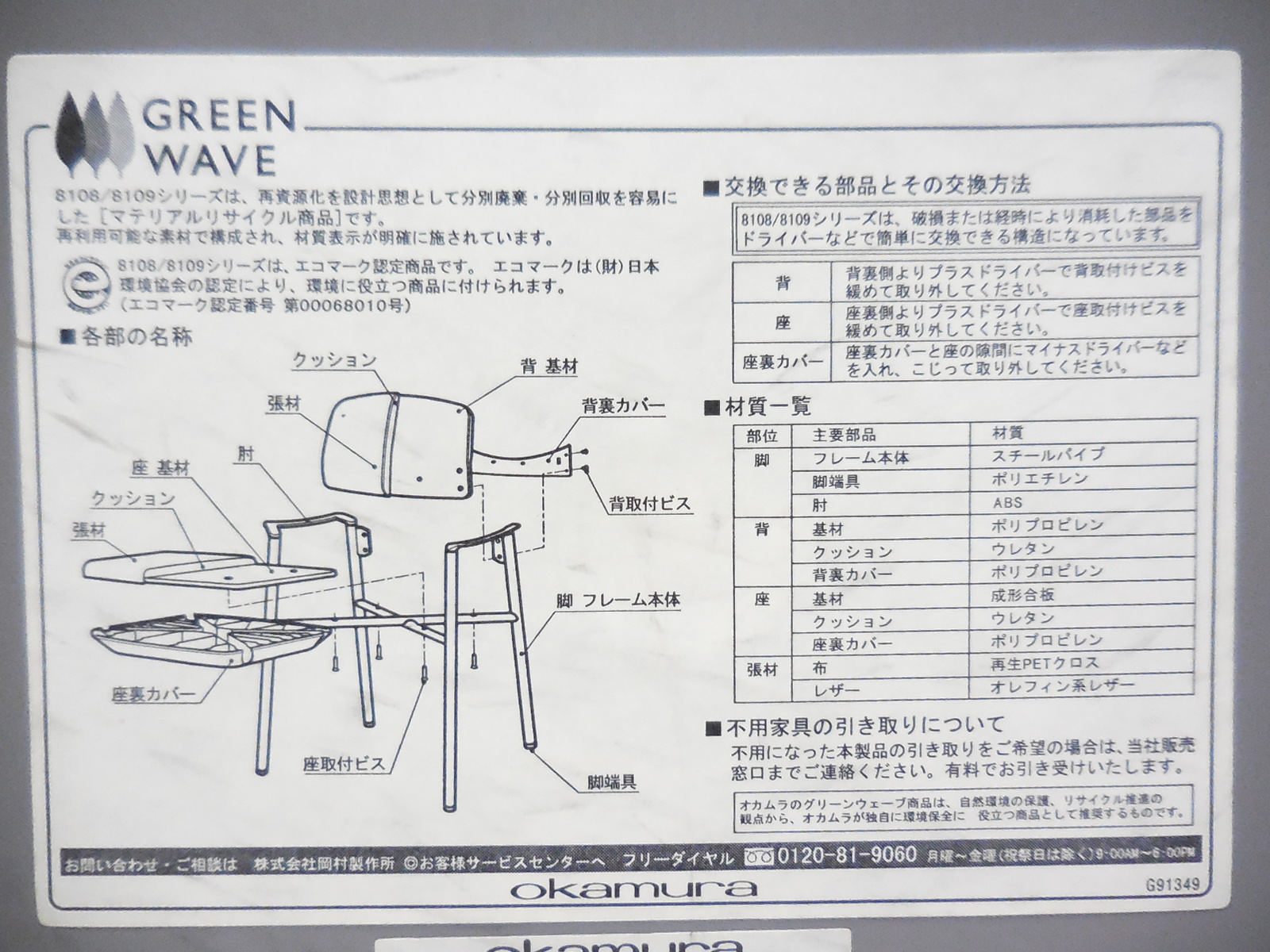 【中古】 8108シリーズ 8108ZZ FR04 オカムラ/okamura スタッキングチェア 248243