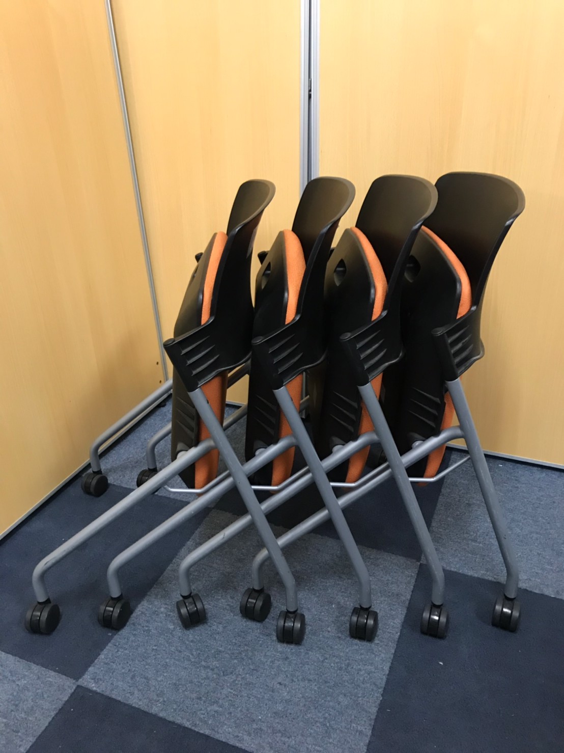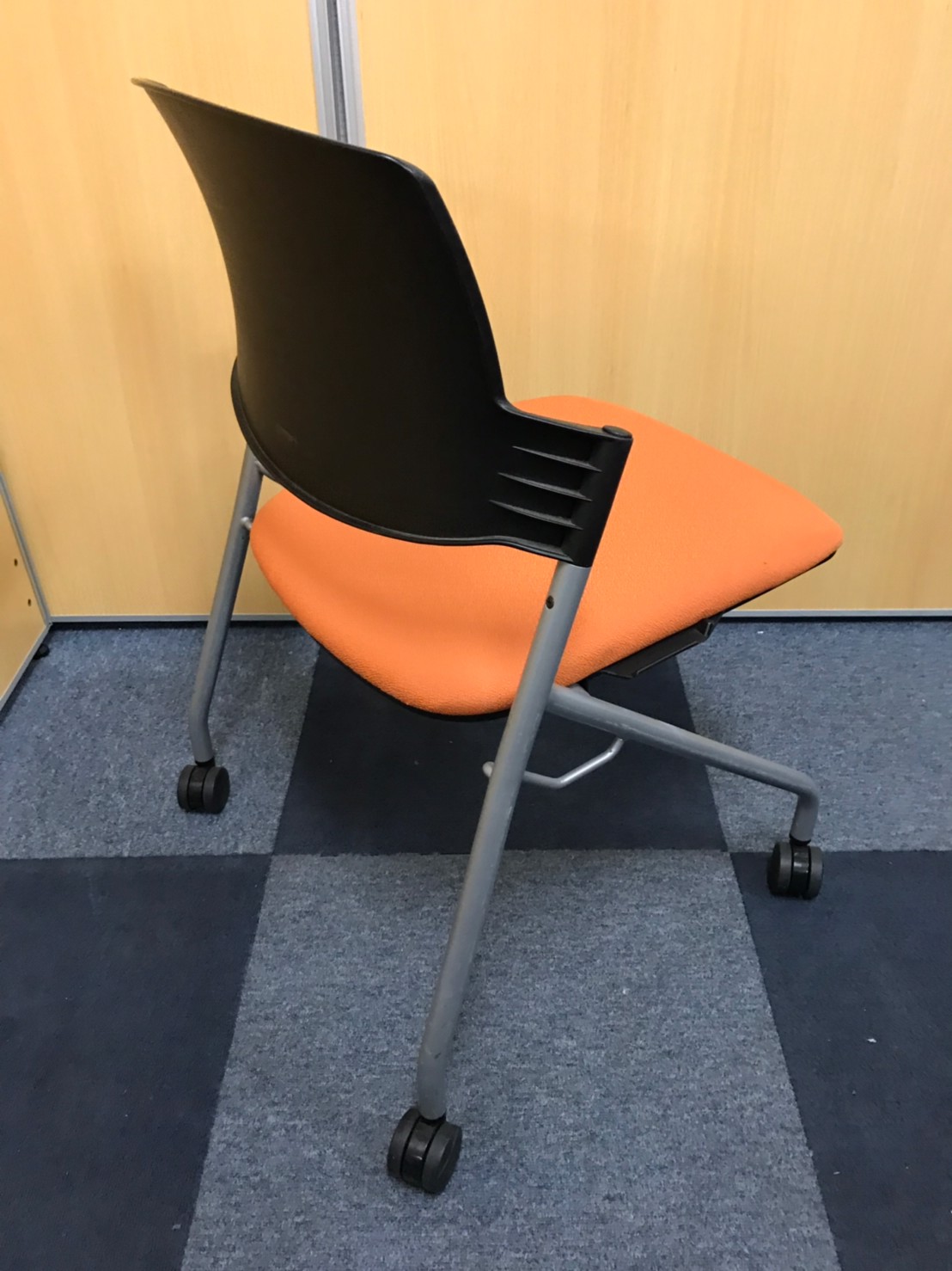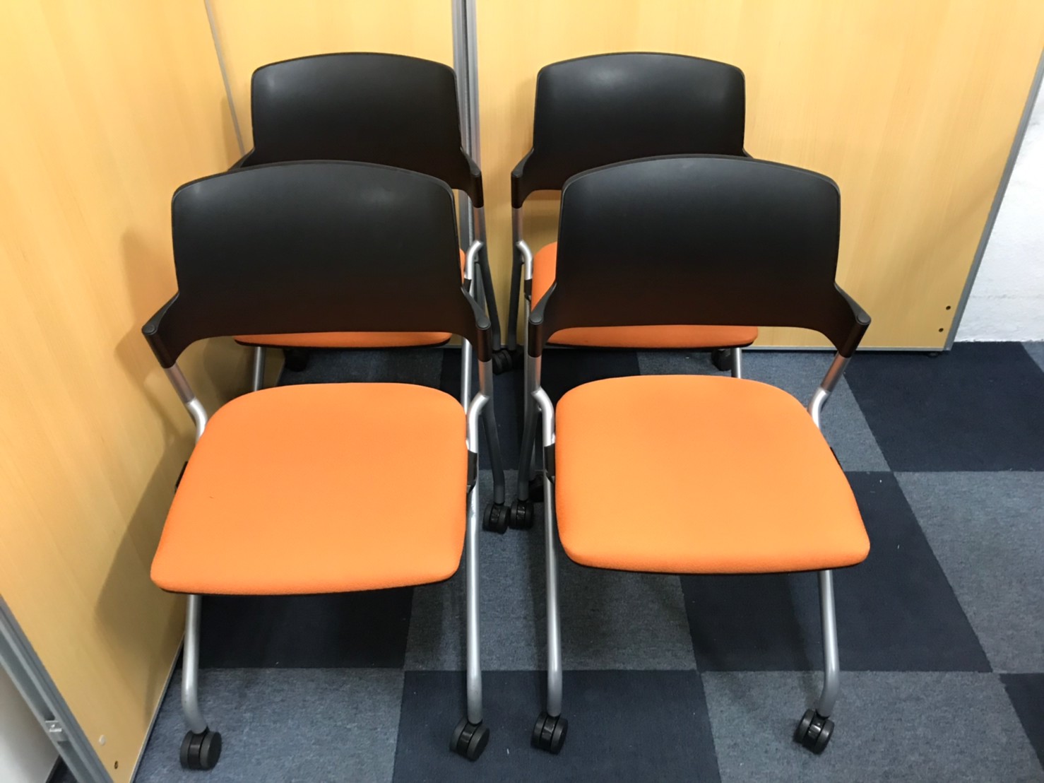 【4脚セット!!】キャスター付き!ネスティングチェア!オレンジ×ブラック!【ポップな空間を演出します!!】- 在庫数