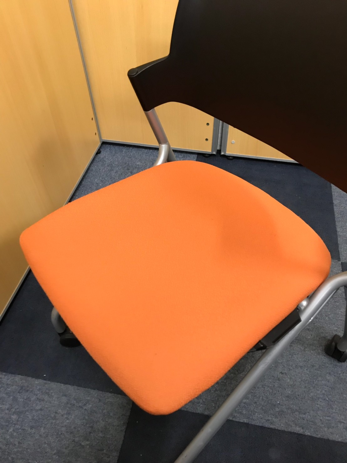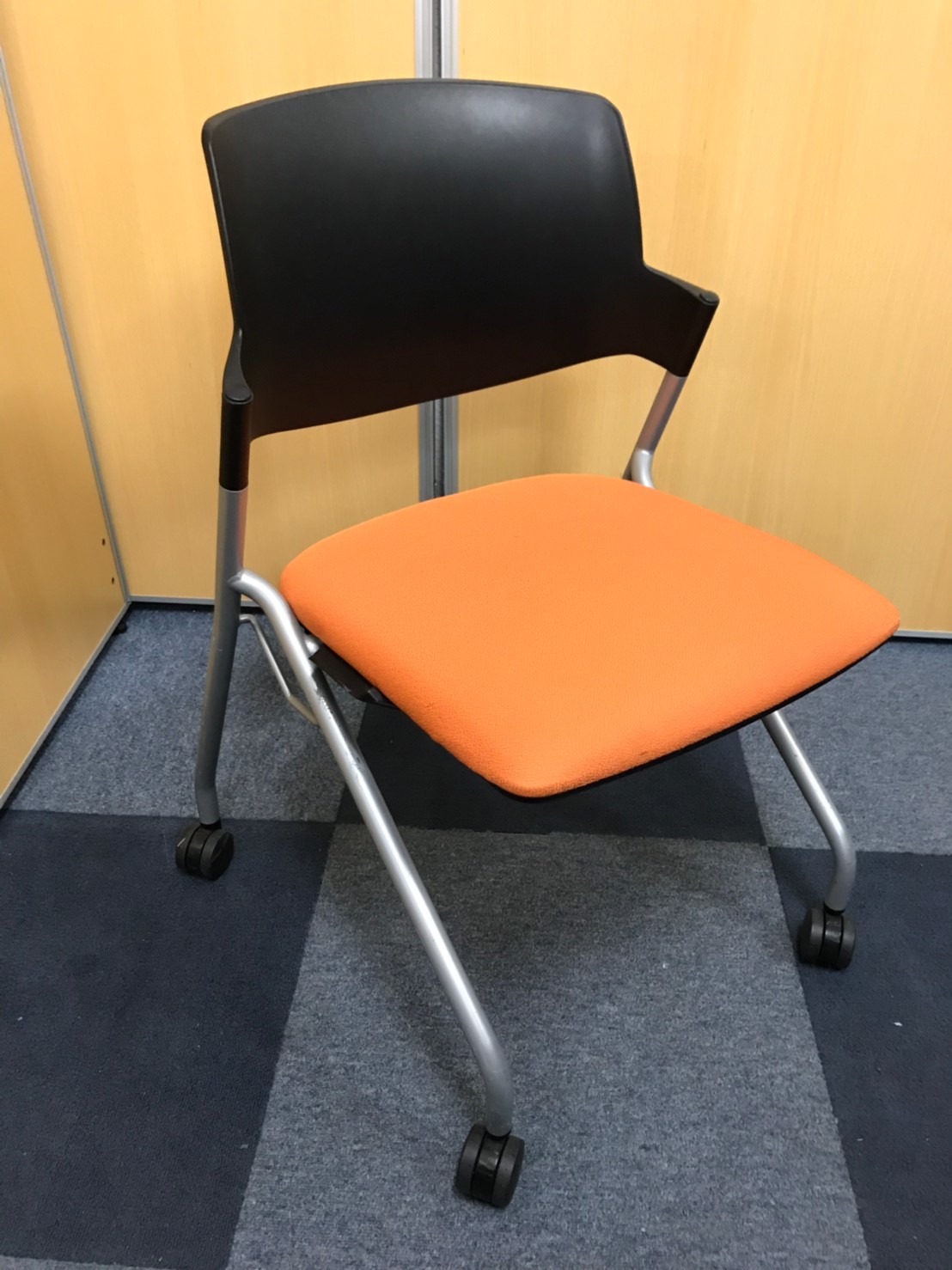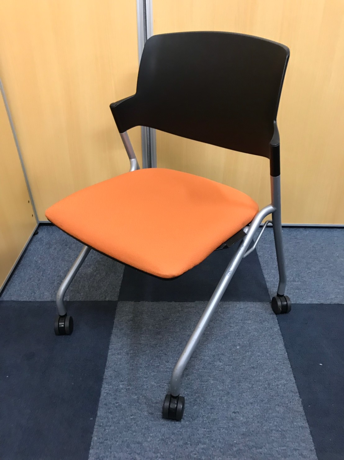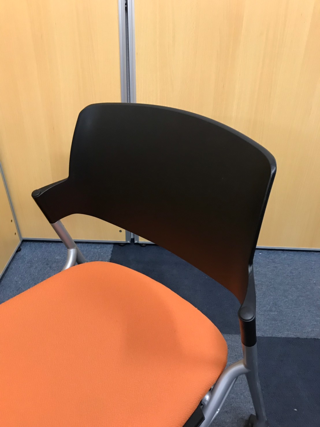 【4脚セット!!】キャスター付き!ネスティングチェア!オレンジ×ブラック!【ポップな空間を演出します!!】- 在庫数