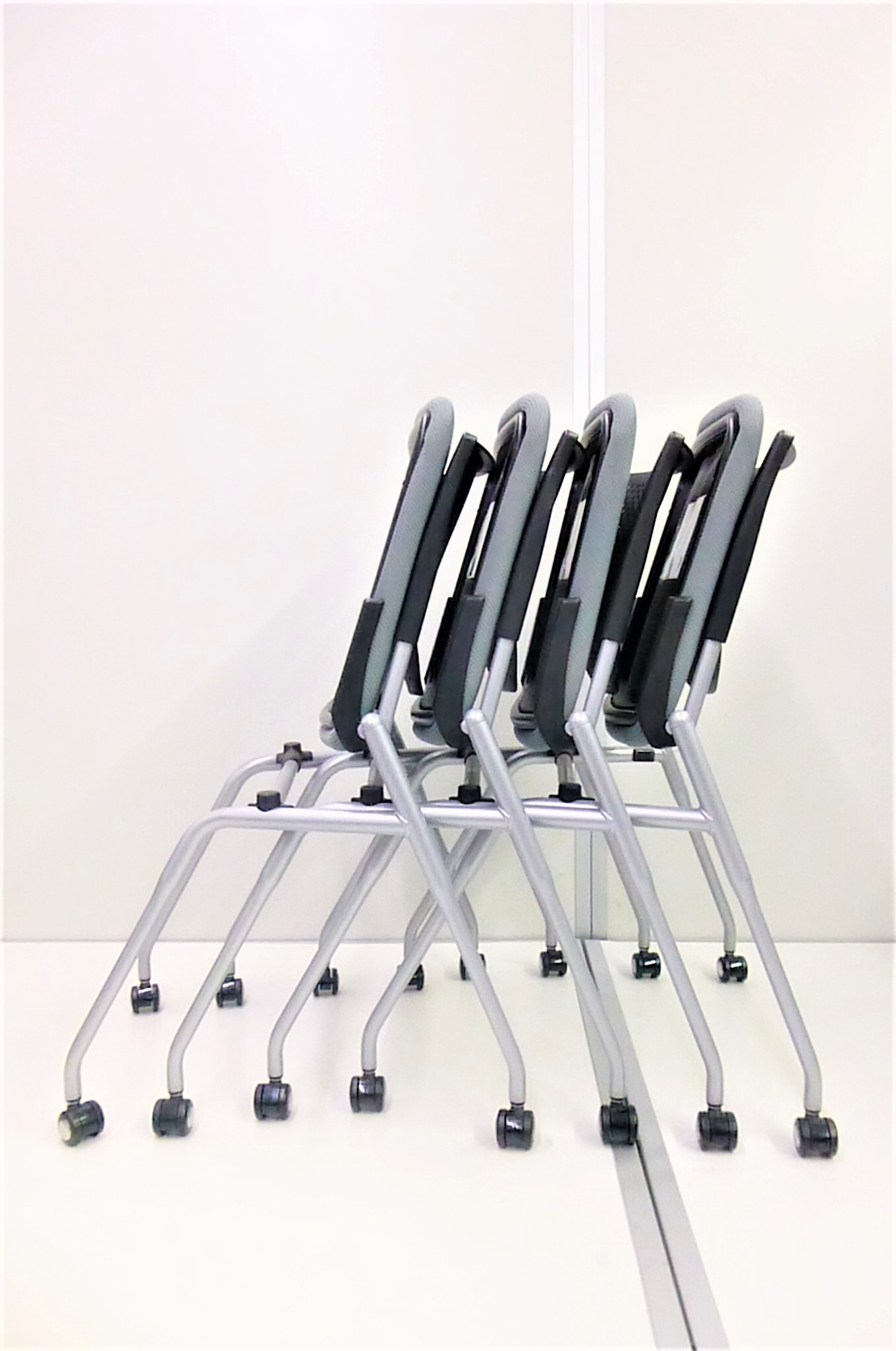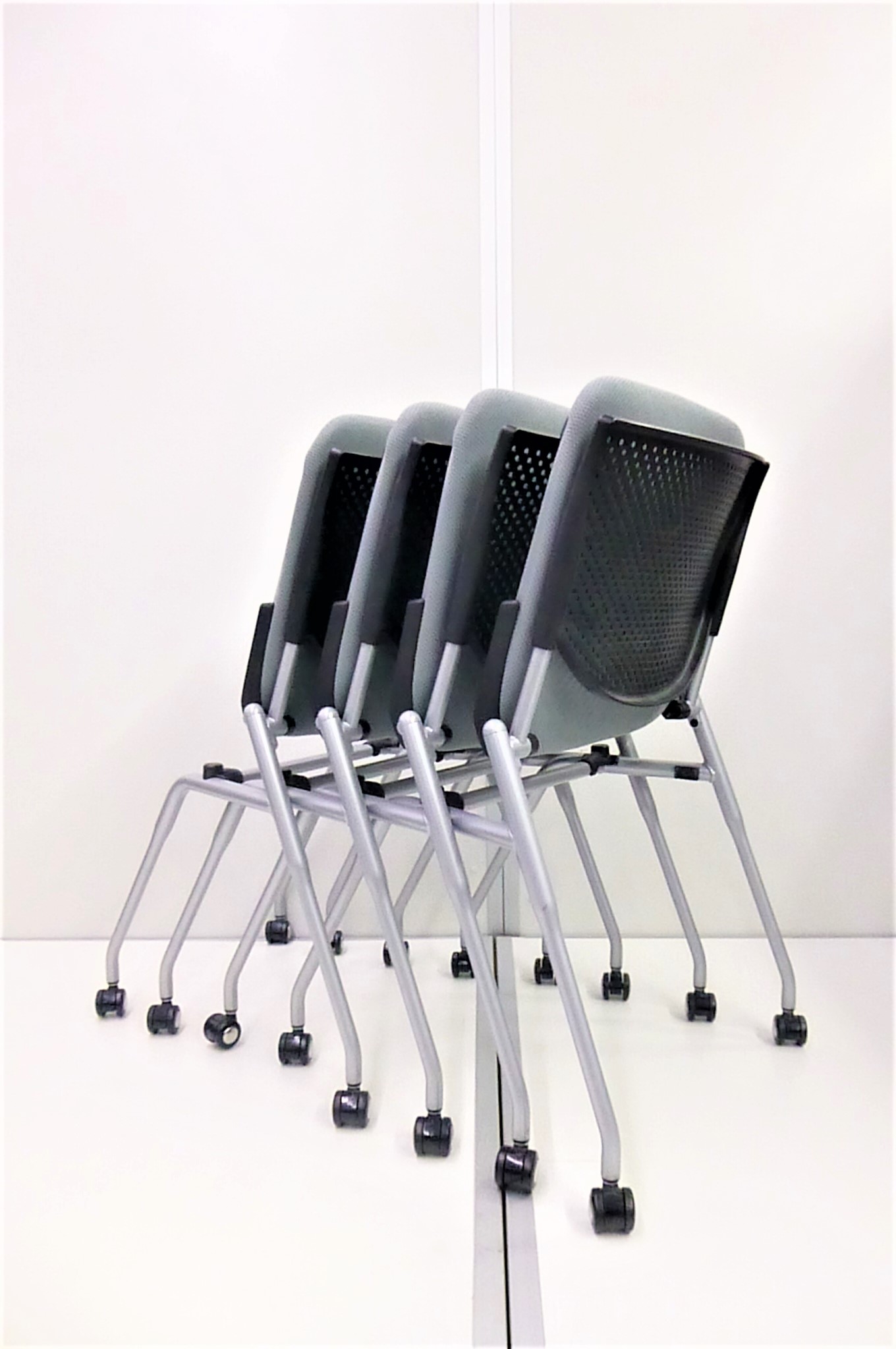 スペース空間を最大限に生かせる座面が跳ね上げ可能なネスティングチェア! ■オカムラ/プロスタック/グレー