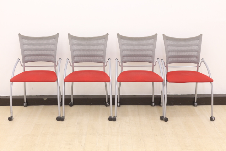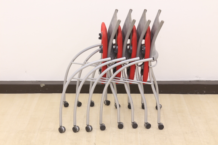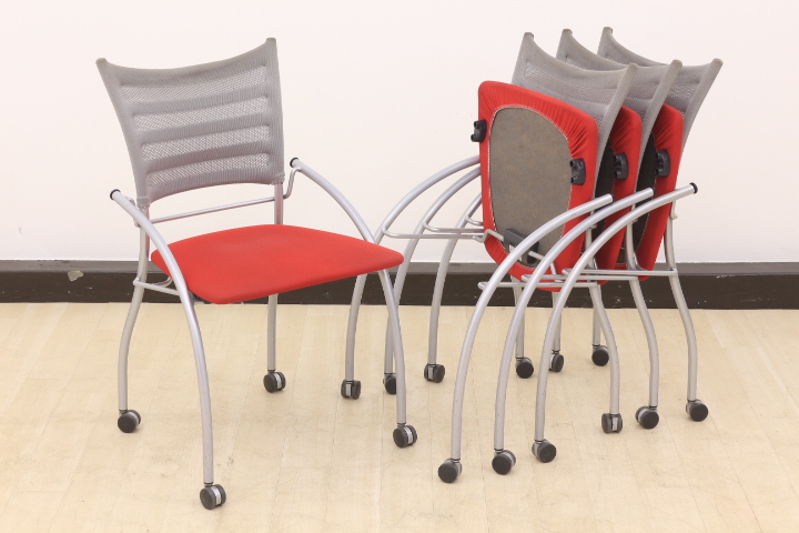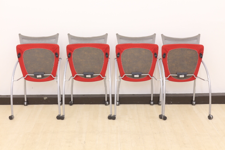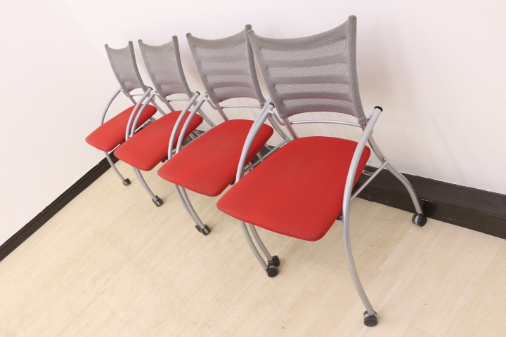 通常価格の10%OFF!!【4脚セット】■イトーキ製ネスティングチェア■プリエ2■レッドカラー- 春日部・越谷店