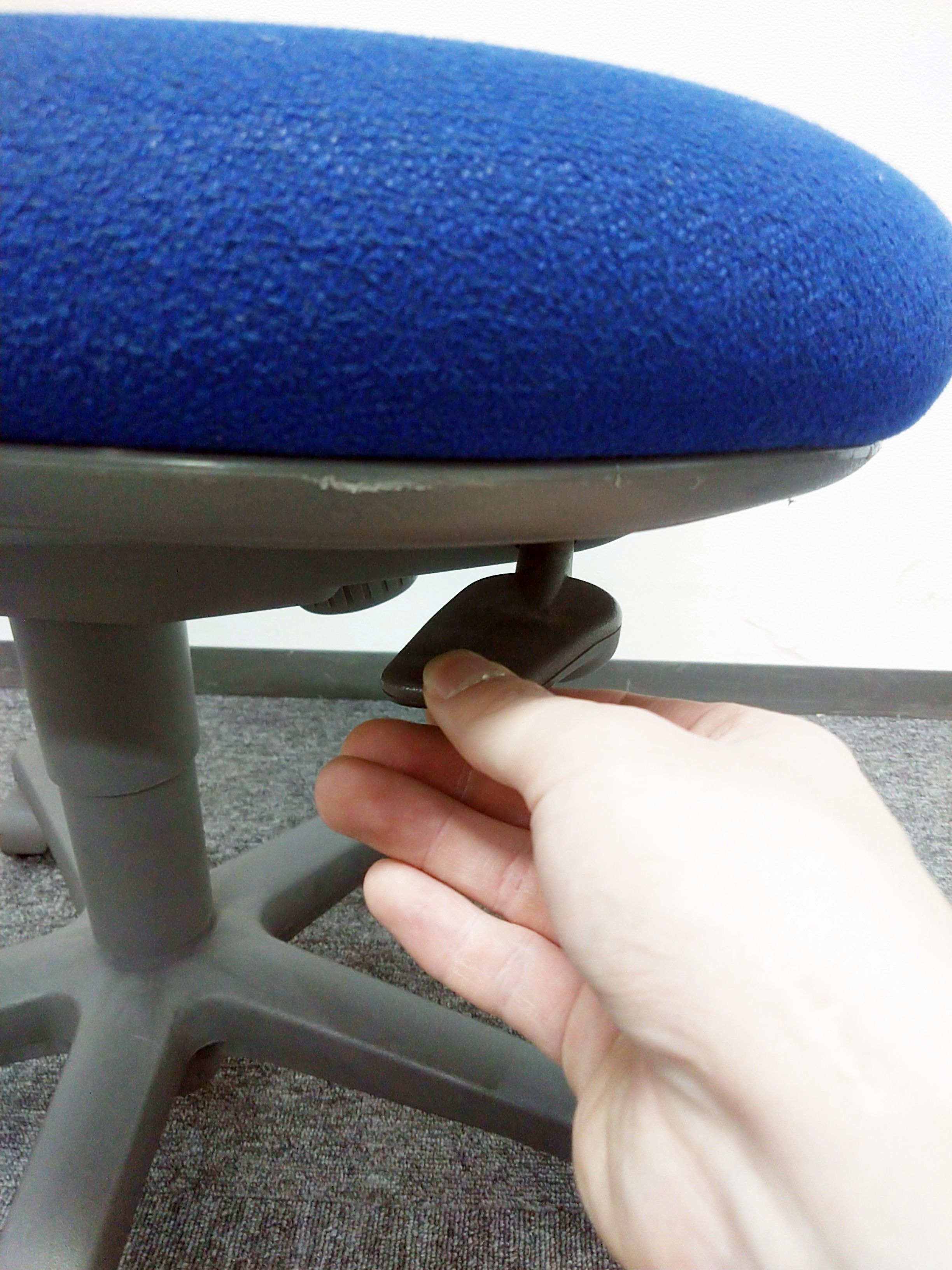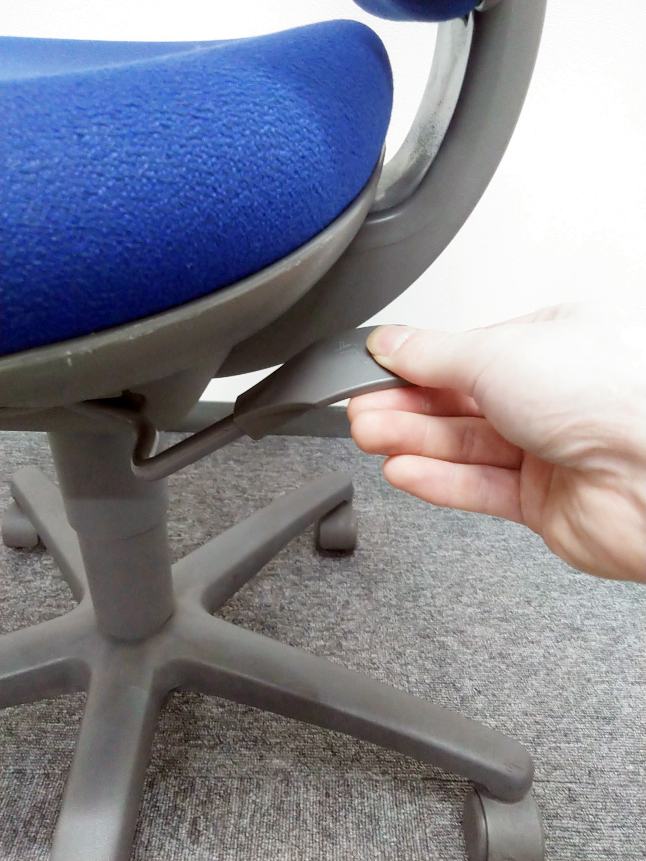 座面の上下昇降は左下のレバーにより、自由な高さで調整頂けます。