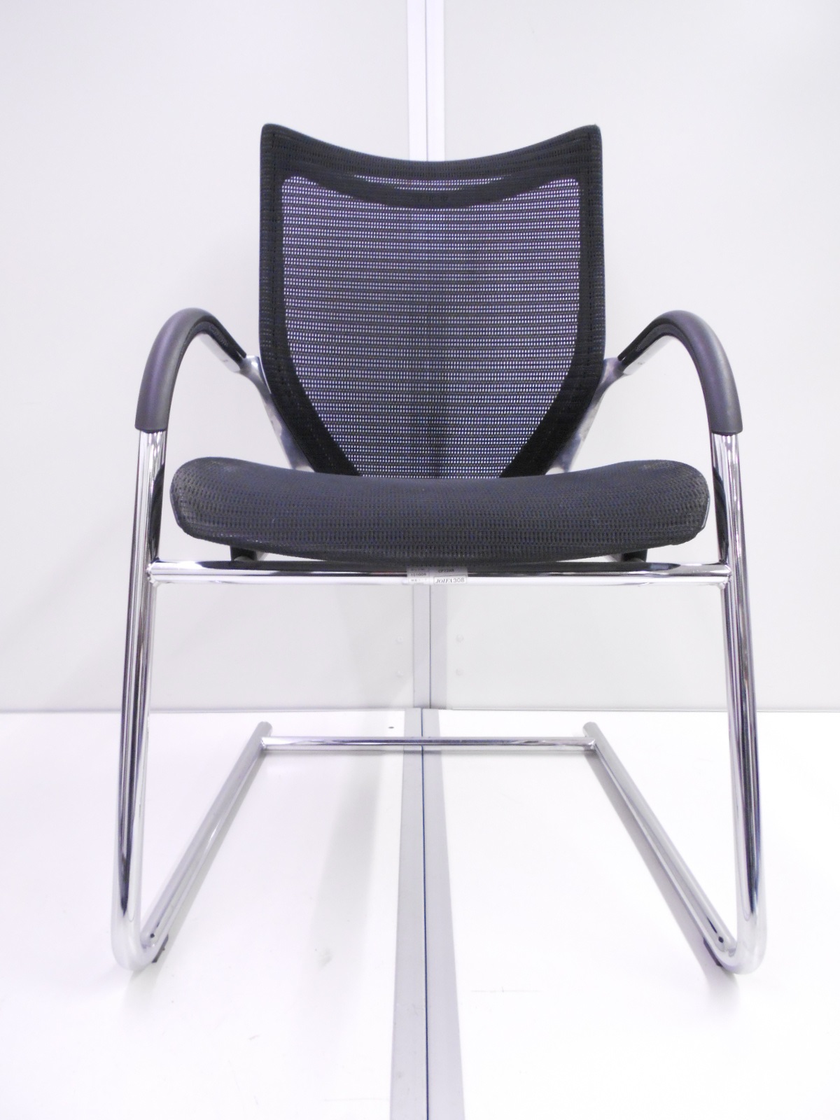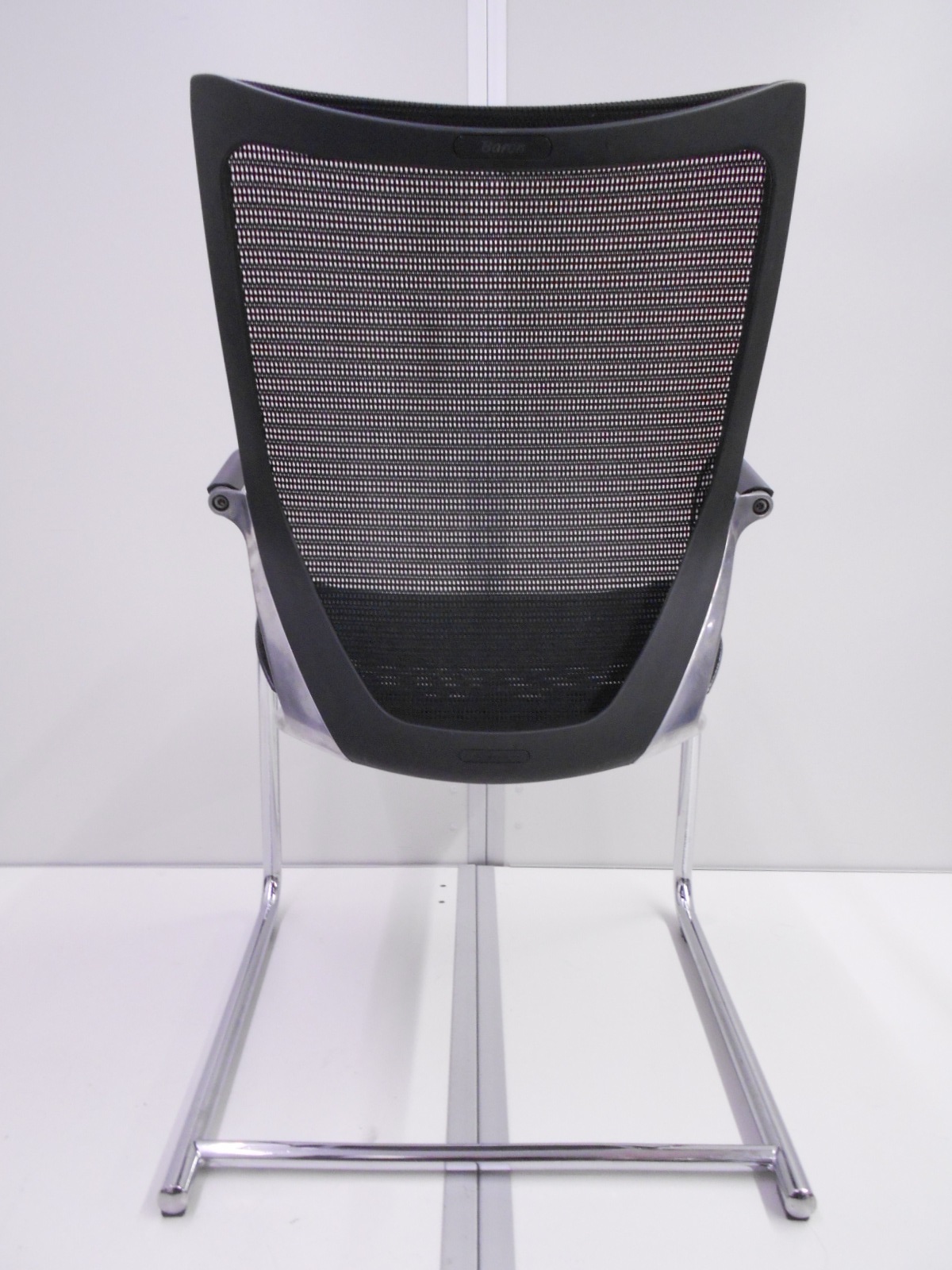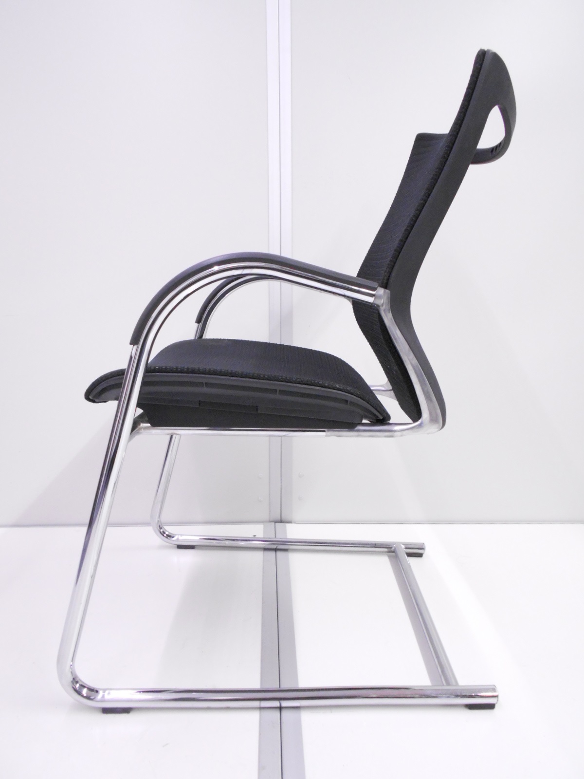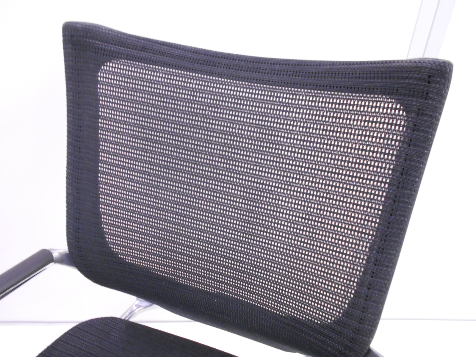 【在庫入替セール】オカムラ バロン ゲストチェア(ミーティングチェア) 背メッシュ×座クッション カンチレバー脚 ブラック×クロームメッキ