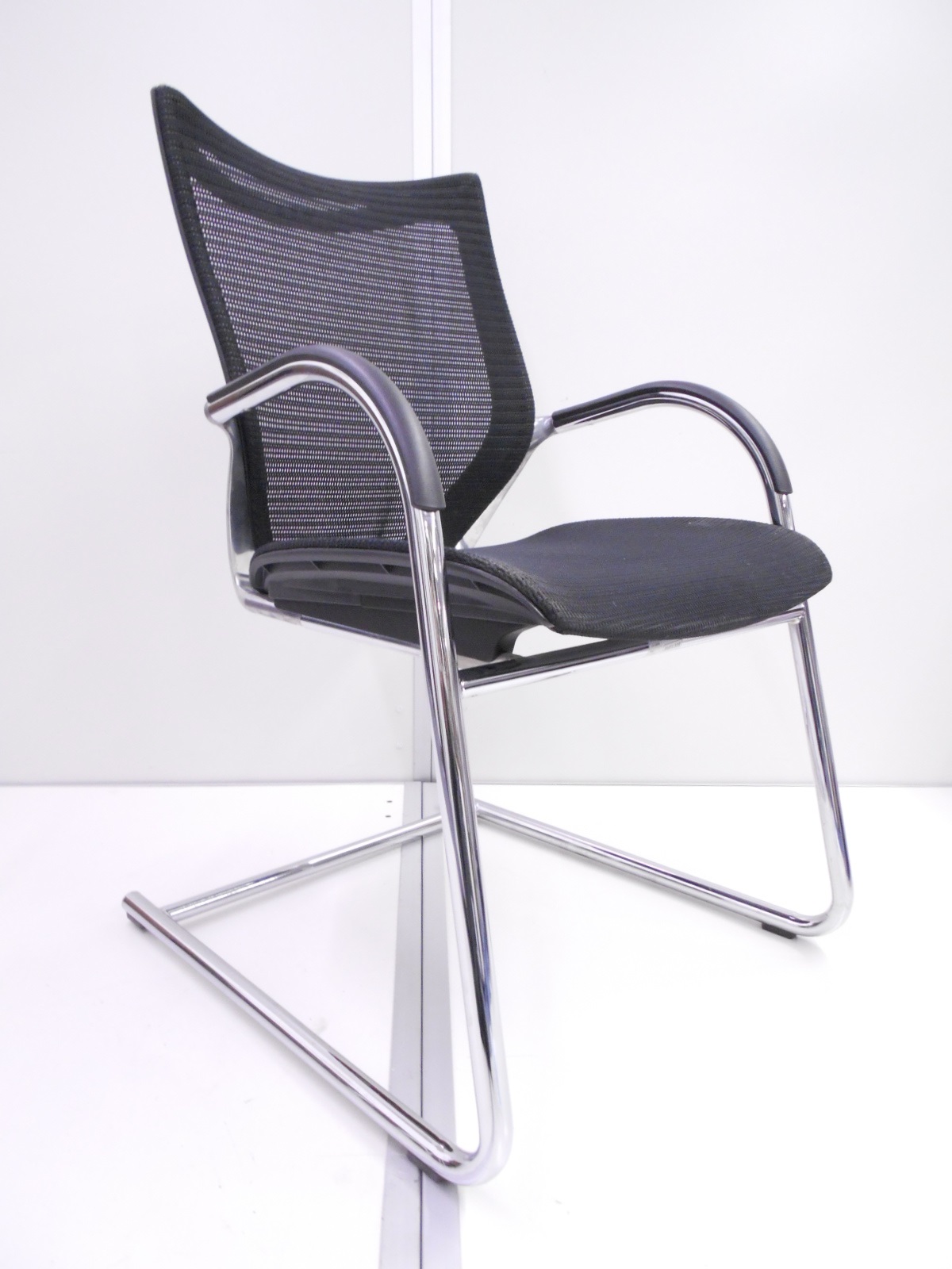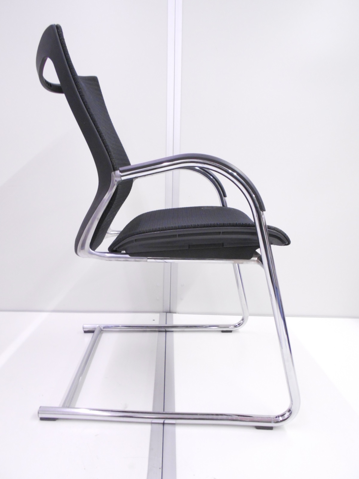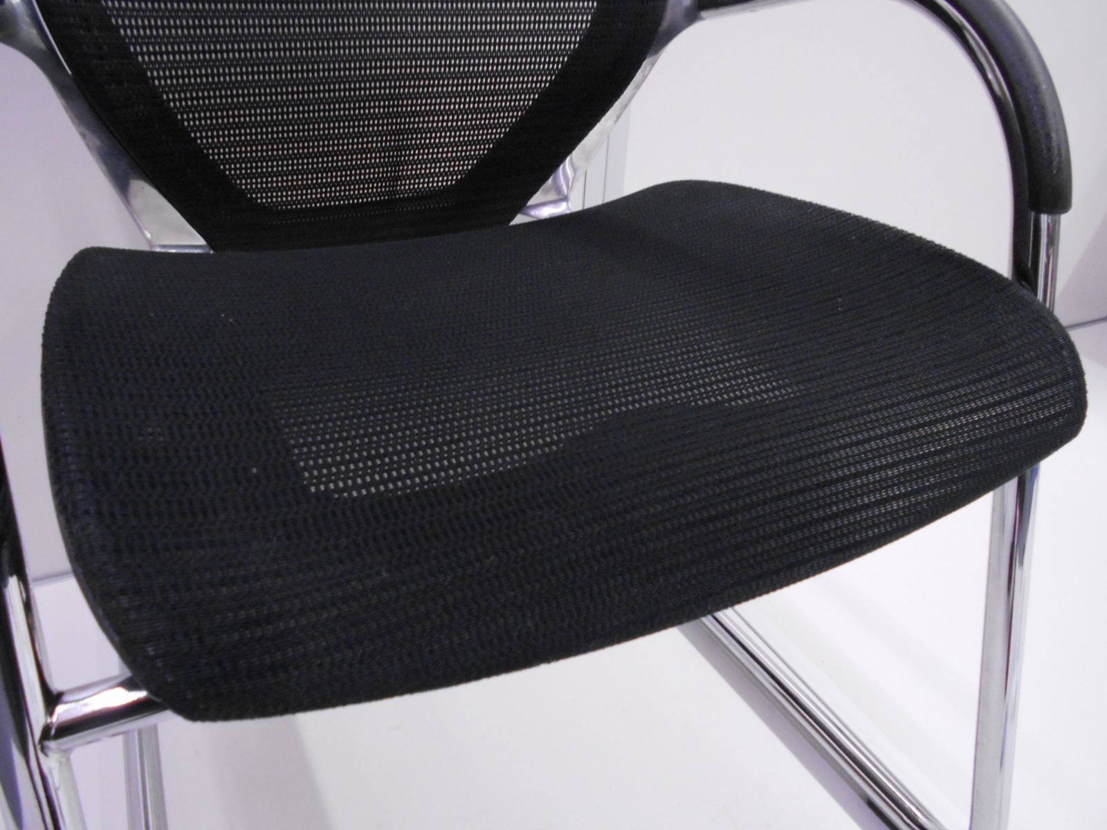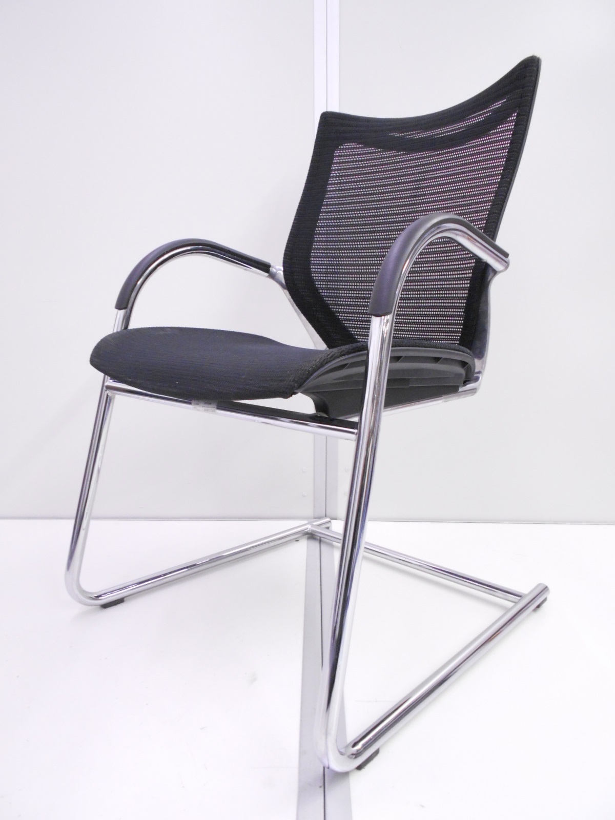 【在庫入替セール】オカムラ バロン ゲストチェア(ミーティングチェア) 背メッシュ×座クッション カンチレバー脚 ブラック×クロームメッキ