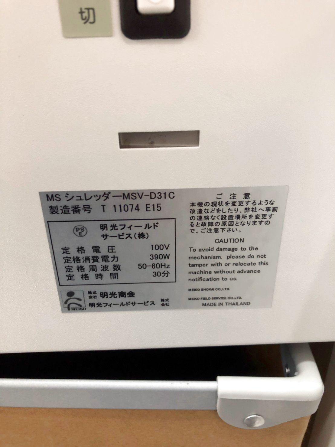 【中古】 MSシリーズ MSV-D31C 明光商会 シュレッダー 248403