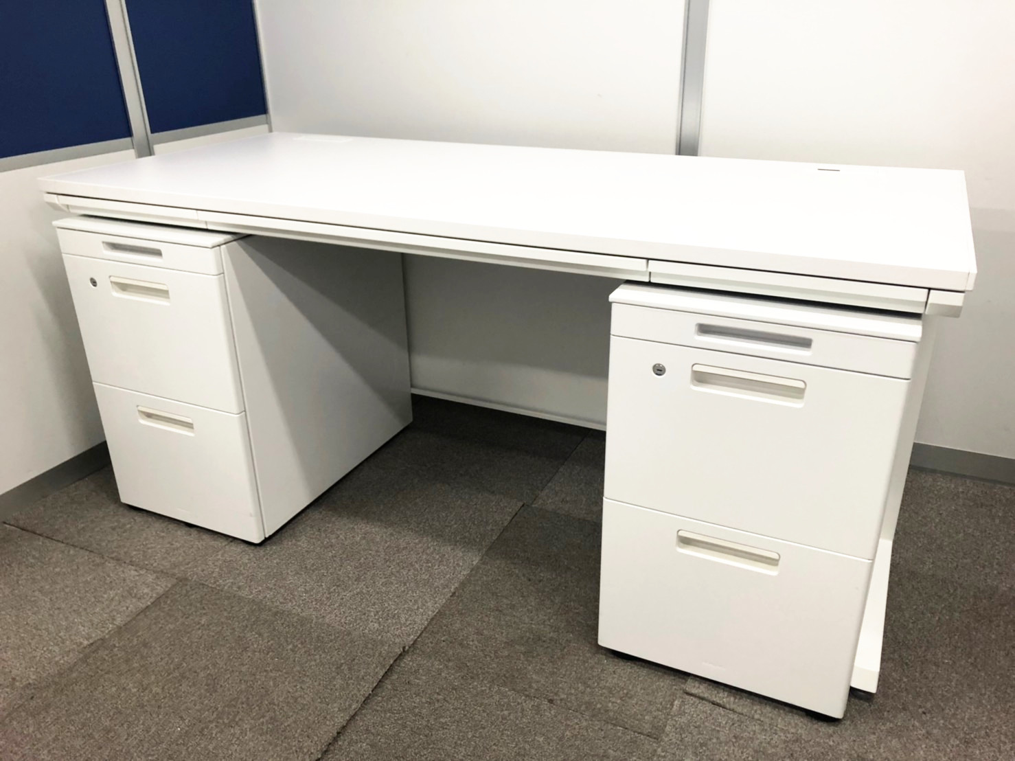 【状態良好】ホワイトワゴンを付けて両袖机に!ホワイトカラーで見栄え抜群!【セットで10%OFF】- 在庫数