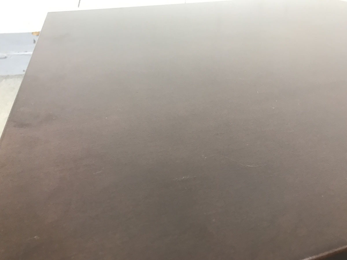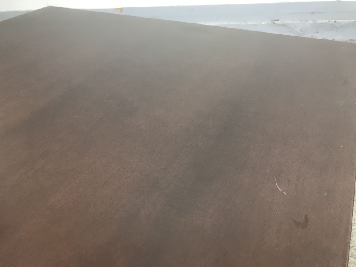 - かなり強い濃い黄ばみ・変色が商品全体にある。(例、天板、幕板、棚板、サイド部分、脚部等にある。)