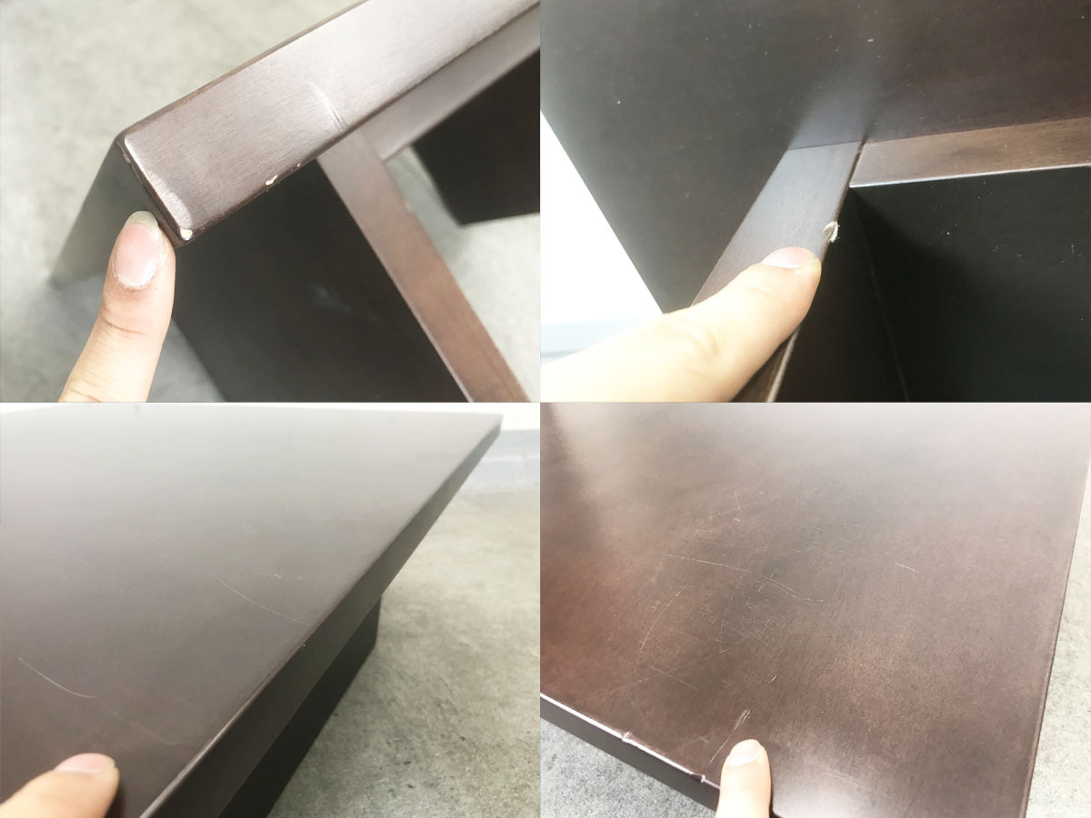 - 目立つ箇所あり傷・凹みが多数、深い傷・凹みが一部ある。(例、天板、幕板、棚板、サイド部分、脚部等にある。)