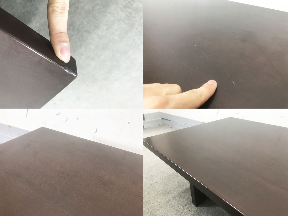 - 若干ありソファの場合、破け、ホツレ、へたり、しわ等が一部ある。(例、背もたれ、肘かけ、座面等にある。)センターテーブルの場合、傷・凹みが一部ある。(例、天板、 脚にある。)