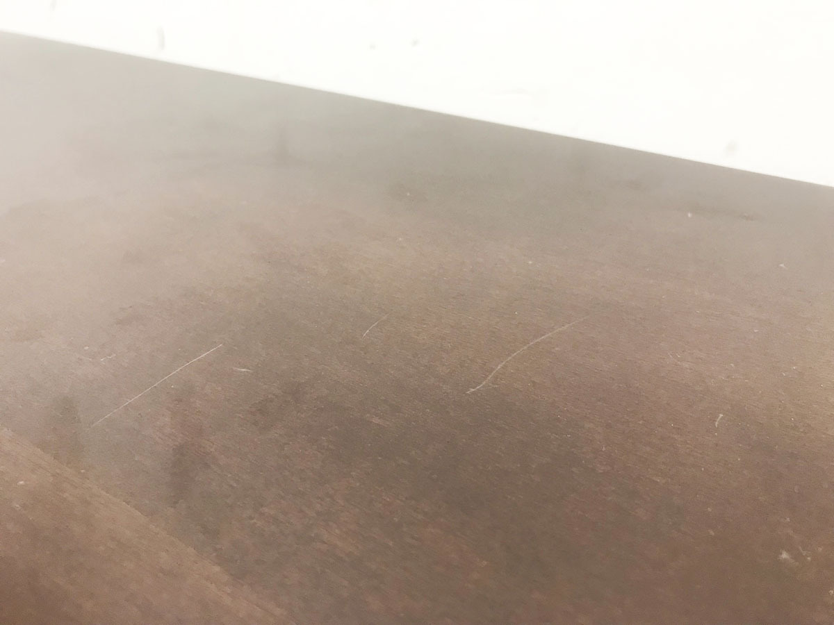 - 目立つ箇所複数ありソファの場合、深い破け、ホツレ、へたり、しわ等が多数ある。(例、背もたれ、肘かけ、座面等にある。)センターテーブルの場合、深い傷・凹みが商>品全体にある。(例、天板、脚にある。)