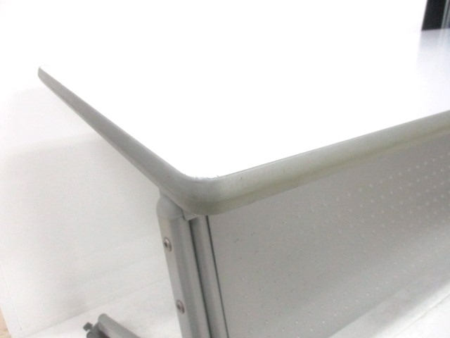 - 一部不具合あり天板歪み、アジャスター無し、キャスター使用不可ようなそのテーブルの本来の効用を果たすための機能以外の一部が使用不可な状態。(例、キャスターロッ ク機能使用不可、棚板無し等がある。)