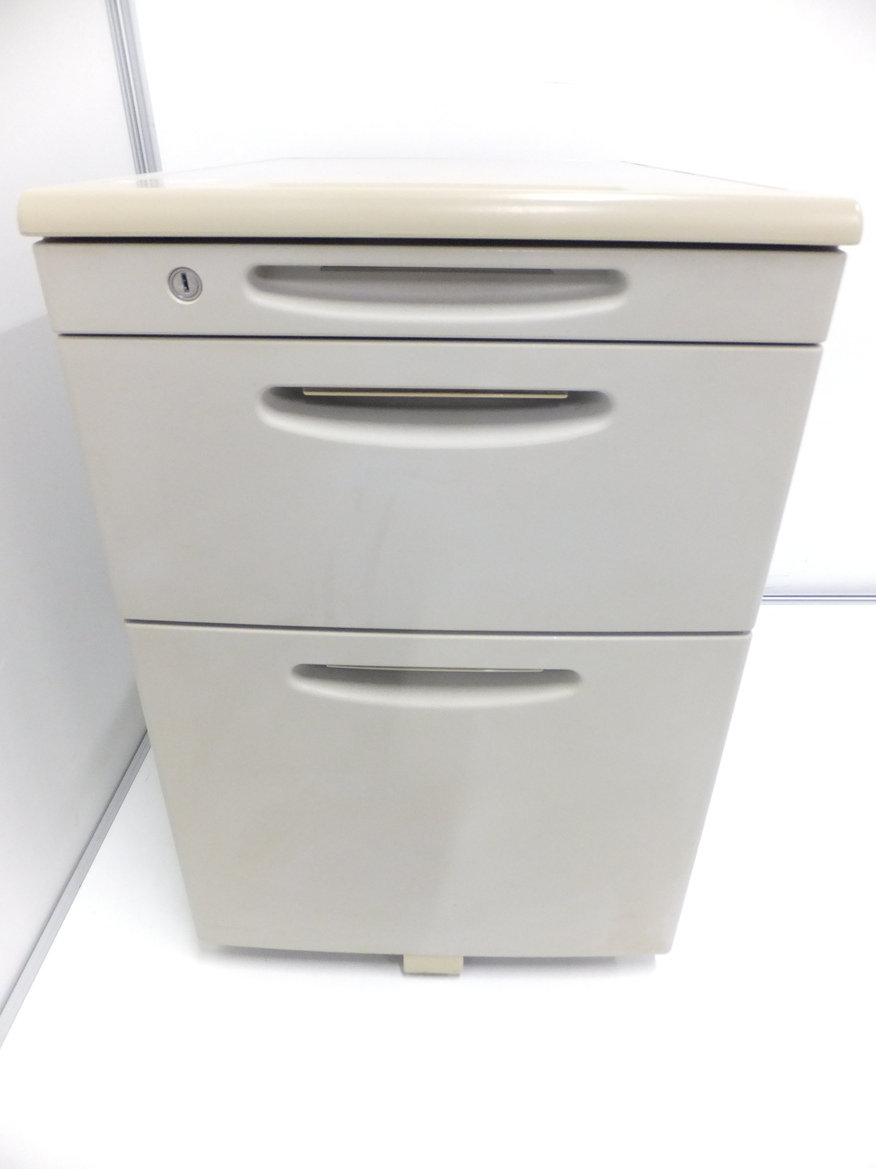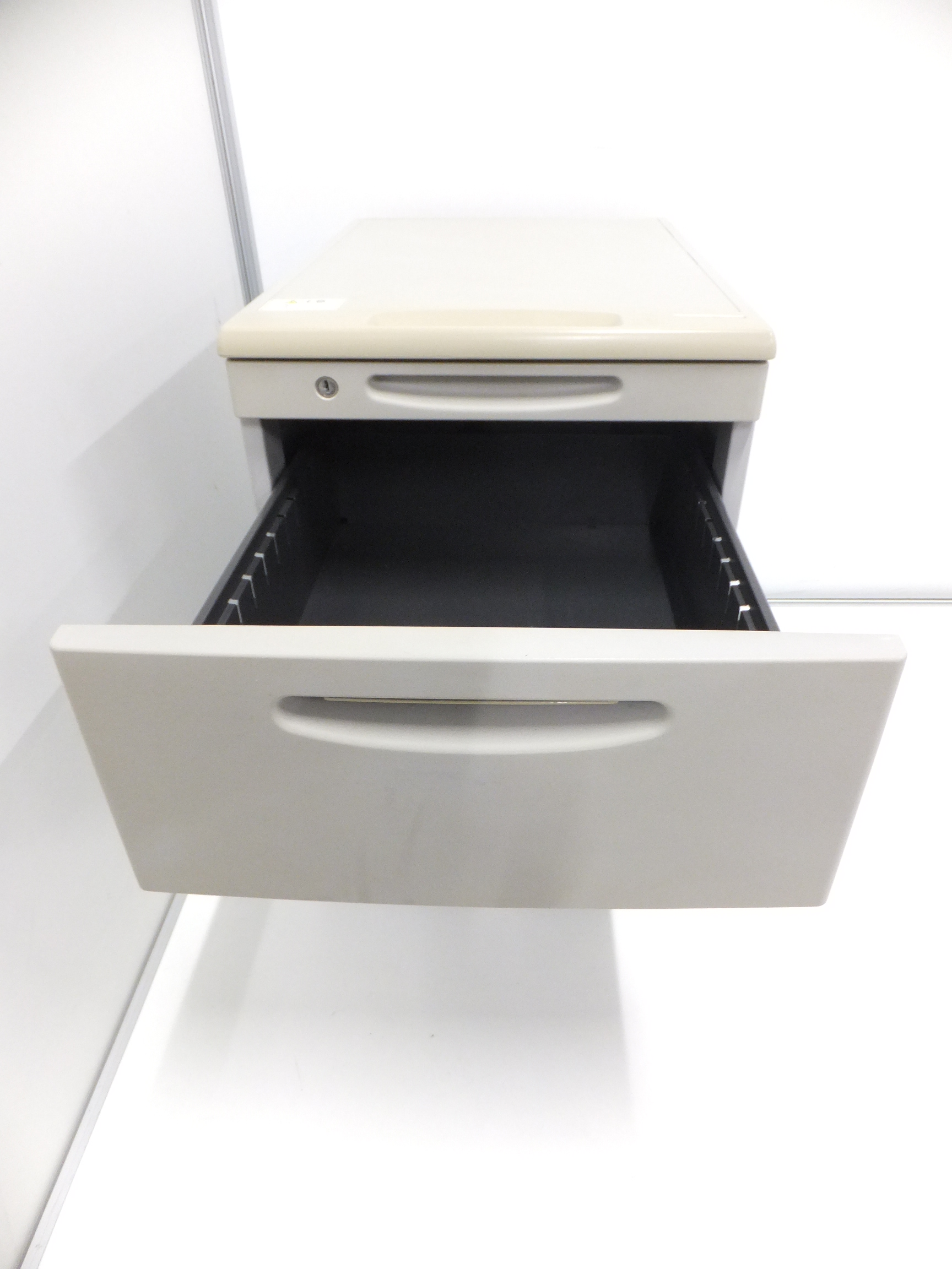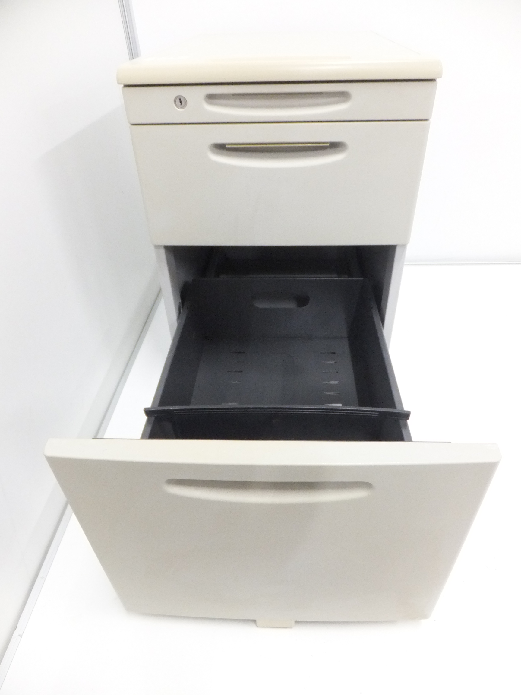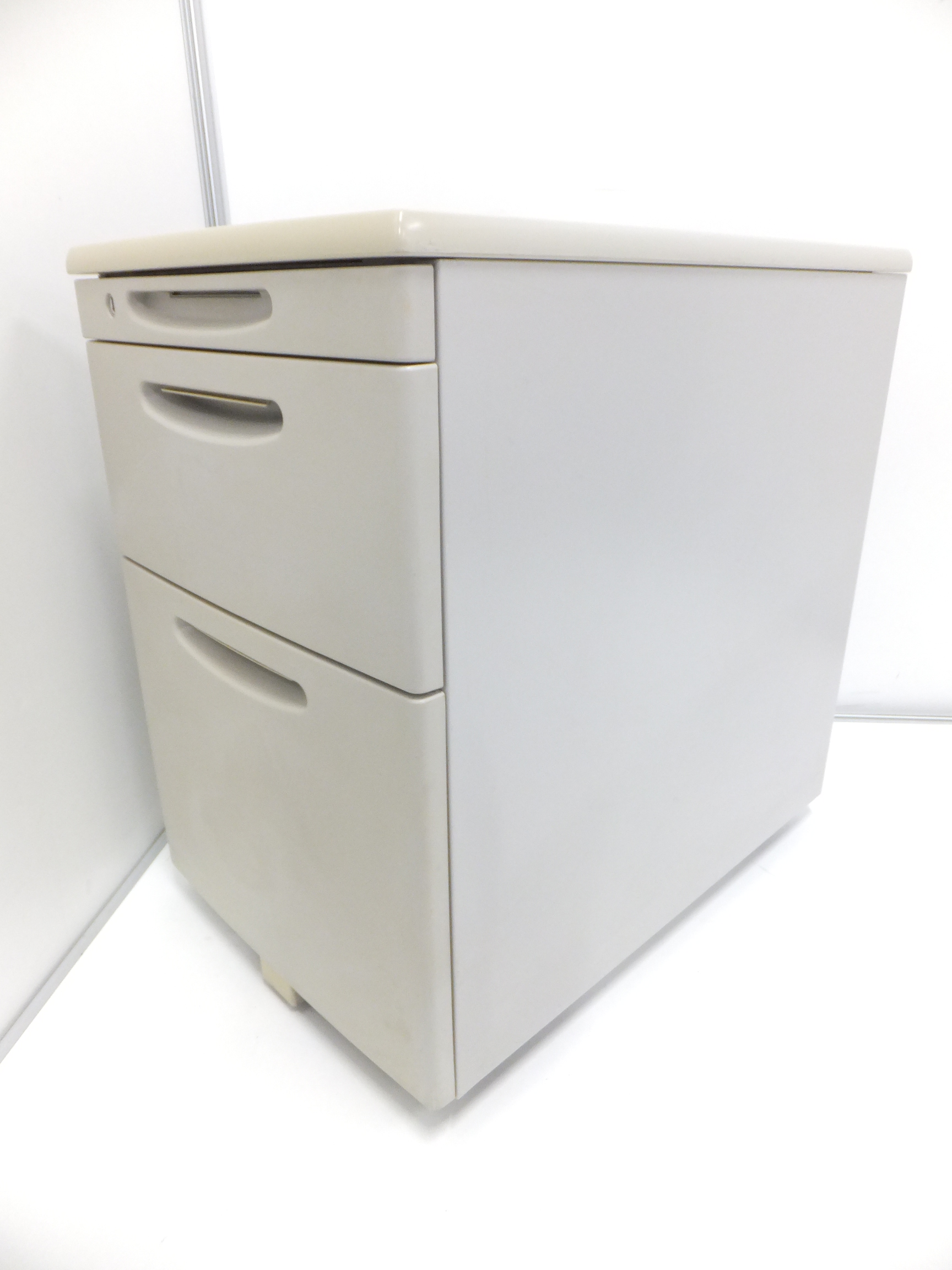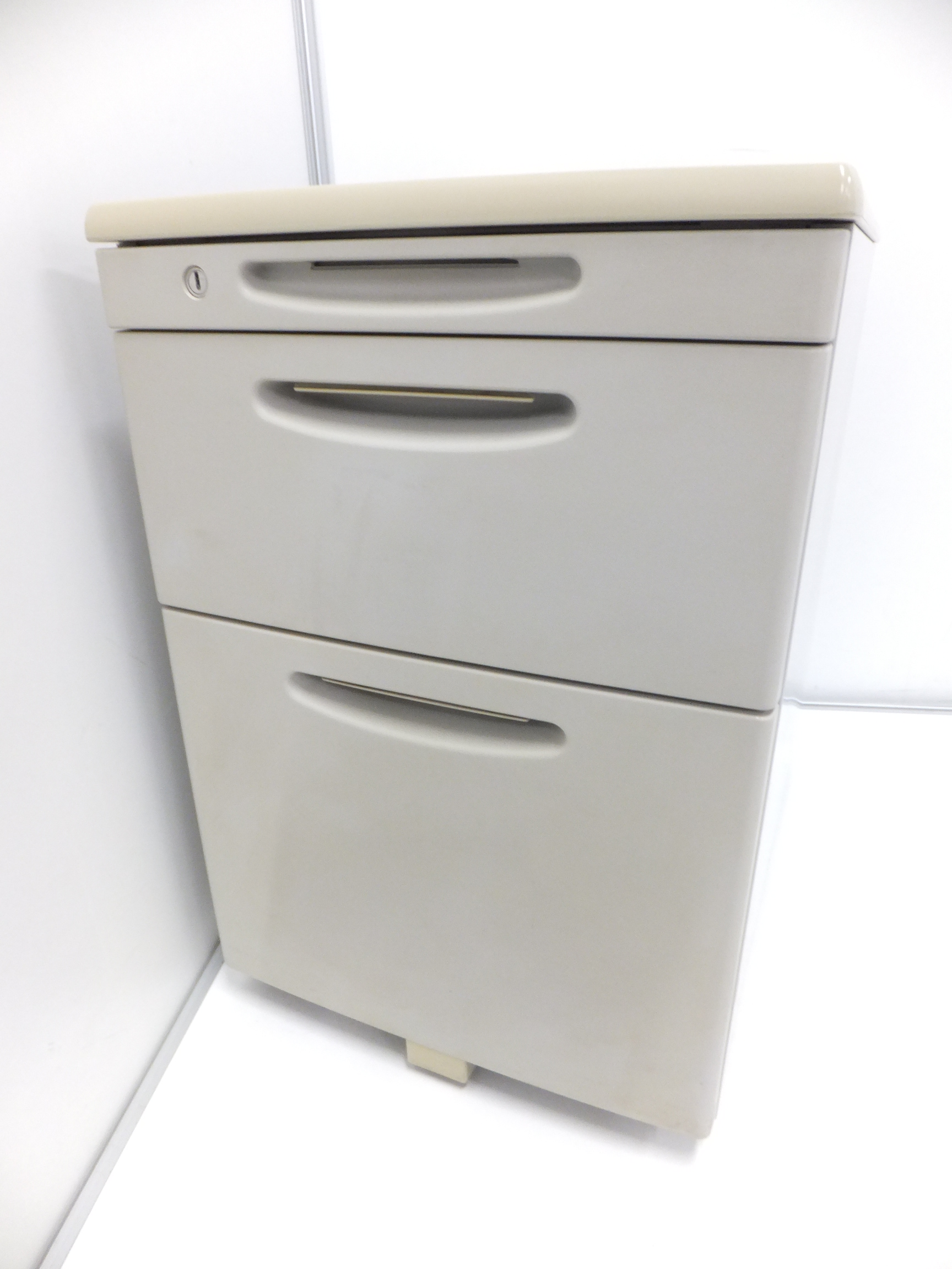 【大人気オカムラ製3段デスクワゴン!天板の把手とキャスターで移動がらくらく!デスク下に置いて収納力アップ!】■オカムラ(okamura)製 SDシリーズ 3段ワゴン デスクインワゴン H610㎜ ■ニューグレー ■シリンダー錠