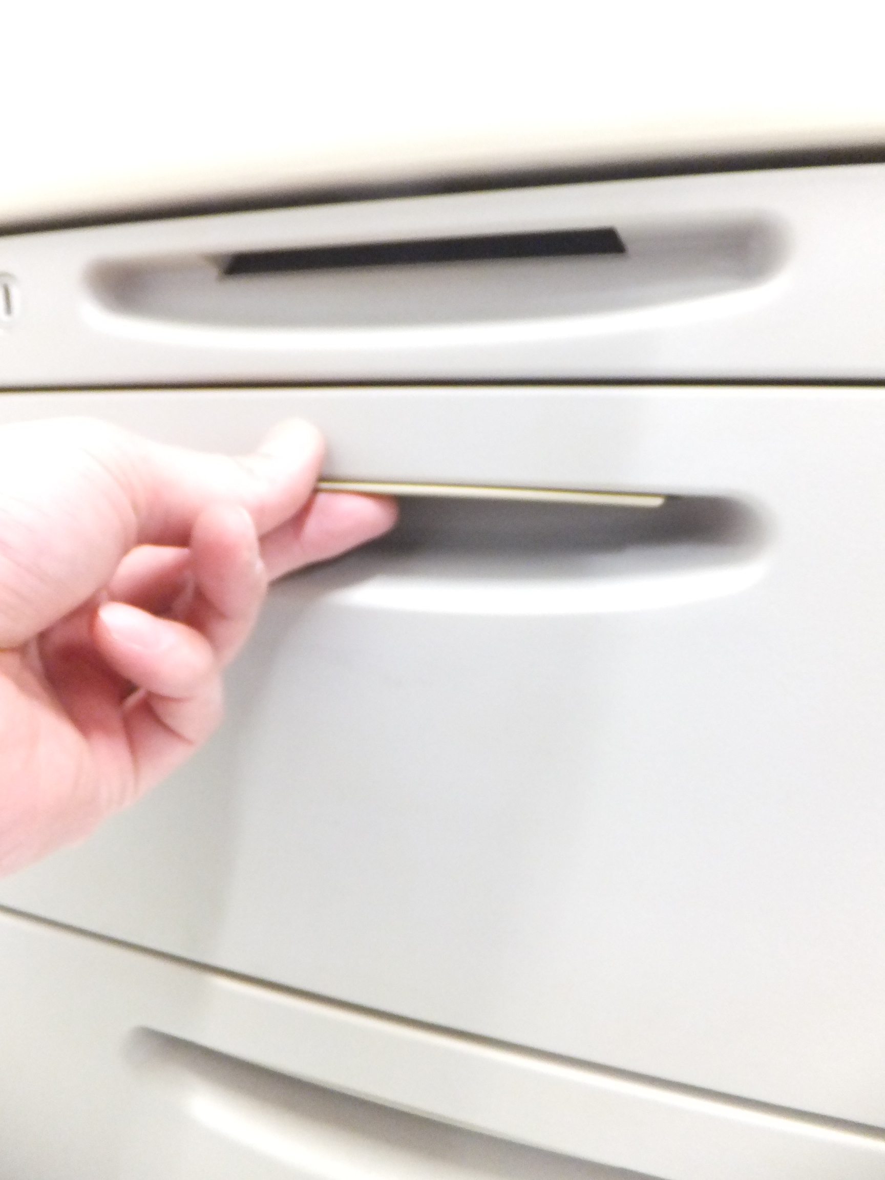 【天板の把手とキャスターで移動がらくらく!シンプルでスタンダードな3段ワゴン!】■オカムラ(okamura)製 SDシリーズ 3段ワゴン デスクインワゴン H610mm ■ニューグレー ■シリンダー錠【2510】弊社使用欄【A01038495】