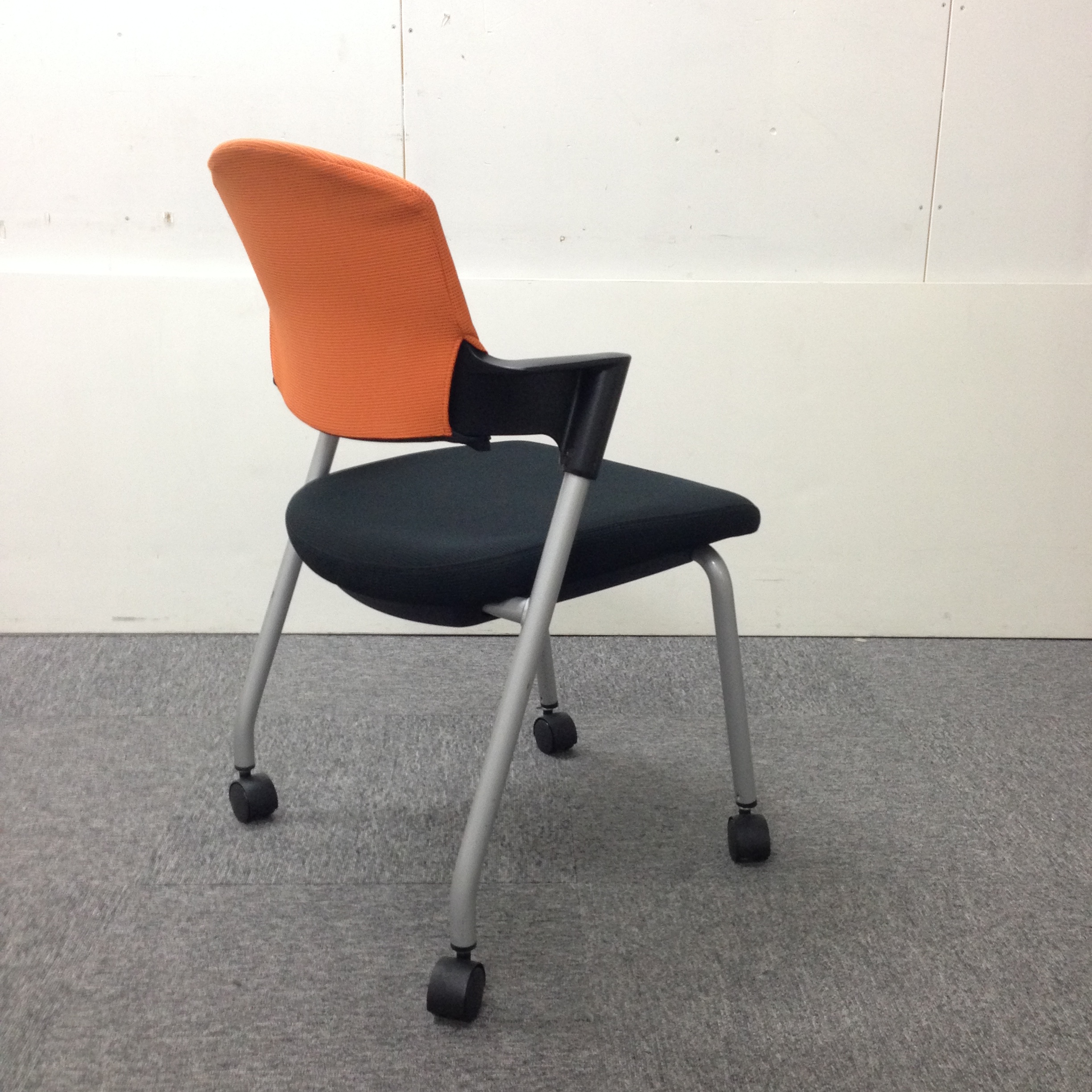 【シンプルスマートなスタッキングチェア!】■コクヨ(KOKUYO) プロッティ(Protty)チェア スタッキングチェア ミーティングチェア ■肘付き キャスター付き ■オレンジ【2505】弊社使用欄【A01018053】