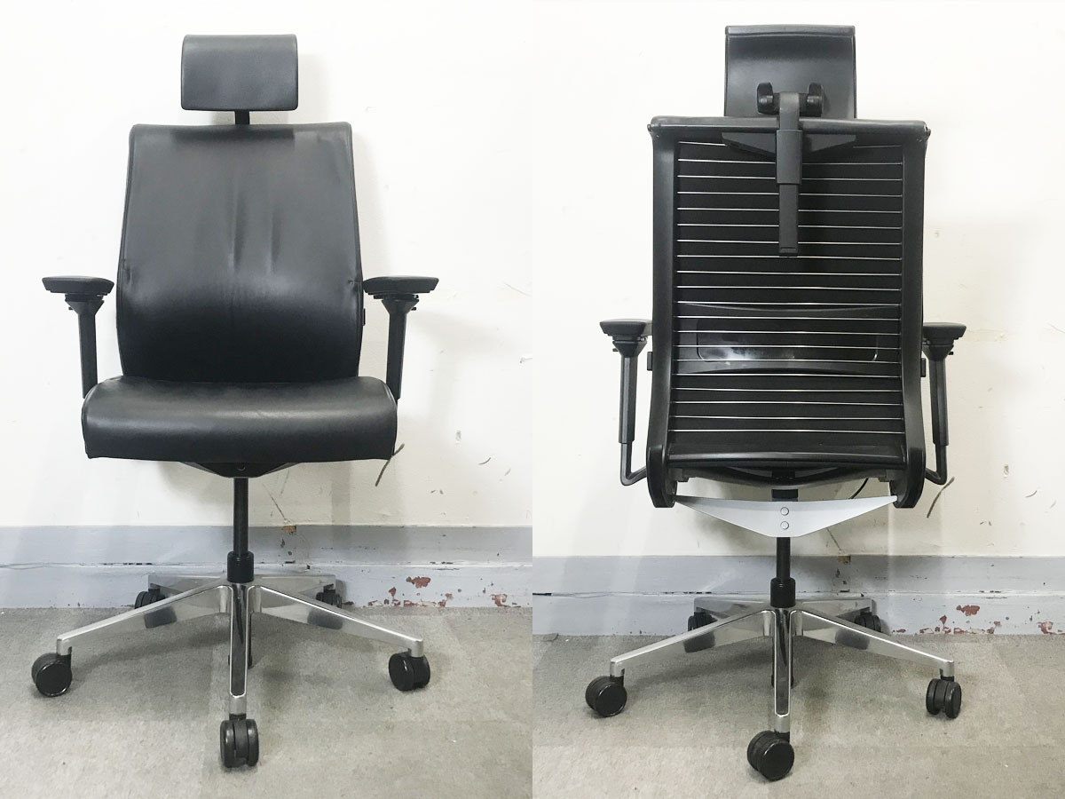 【おつとめ品】SteelCase/スチールケース Think シンクチェア ヘッドレスト付 本革 THK-20111L/LS- デザイナーズ家具センター