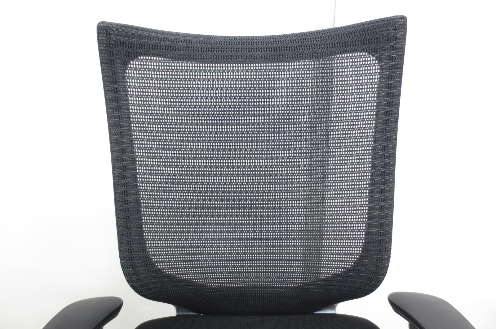 【オフィスの執務室、会議室におすすめ!】■オカムラ(okamura)製 バロン(Baron)チェア 肘付き ハイバック ■背・座面メッシュ ■可動肘 ■ヘッドレスト付き ■ブラック【硬めの座面が大人気!国産メッシュチェアの代表格!】