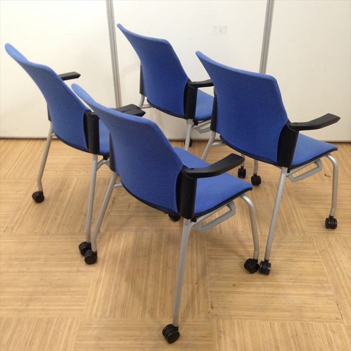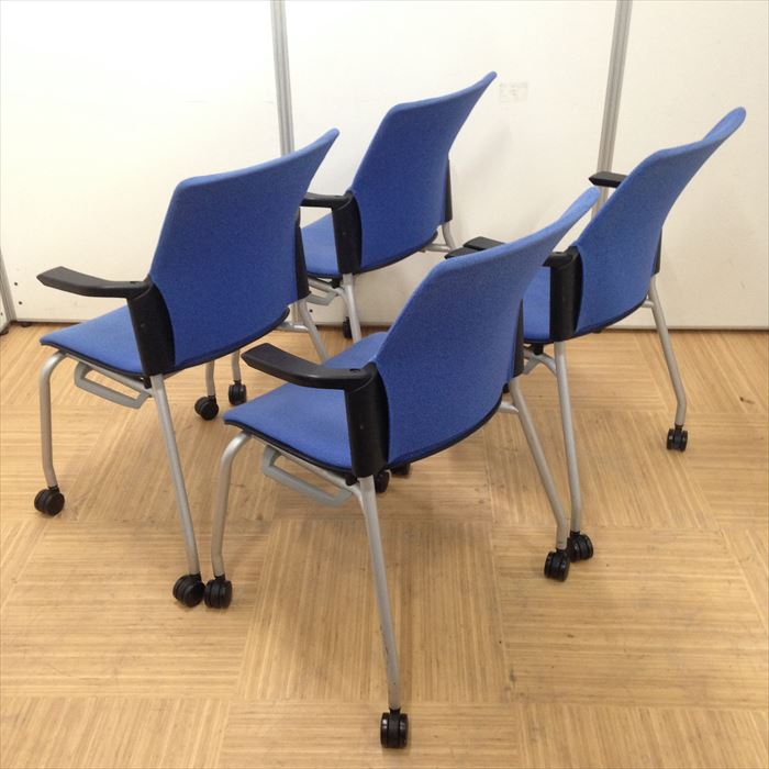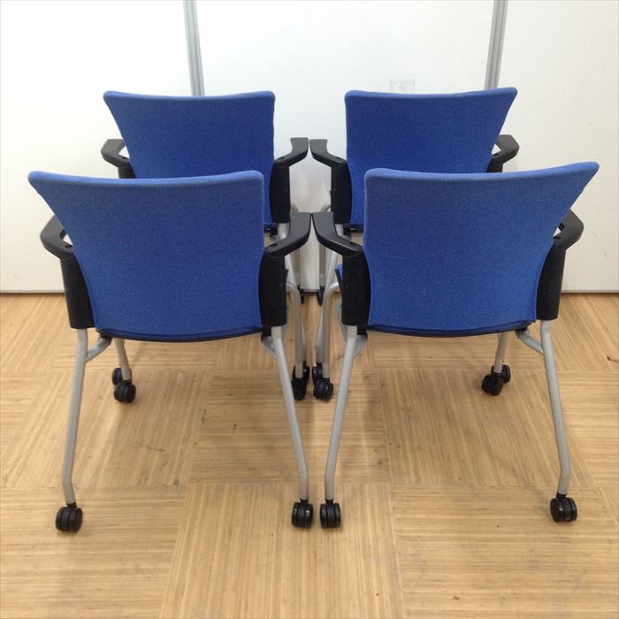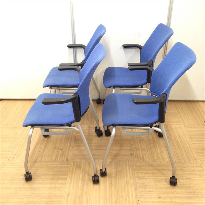 【レアなプラス椅子4脚セット】Cheddar(チェダー)シリーズ|キャスター付き|ブルー色でオフィスに最適!- 名古屋本店