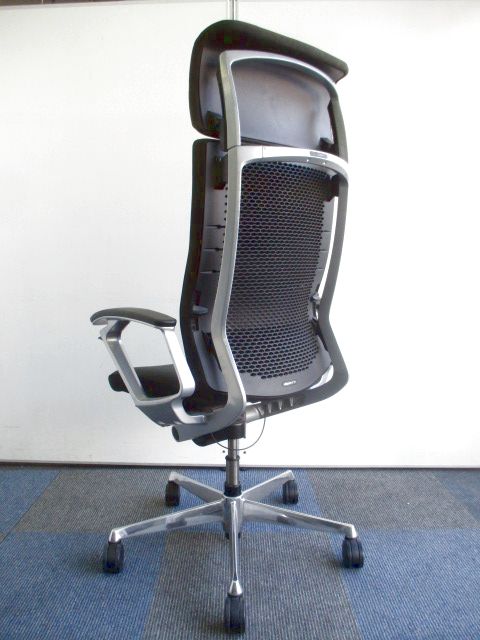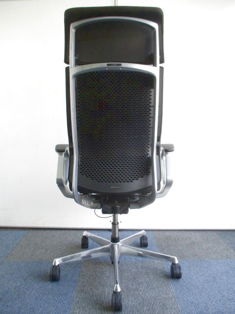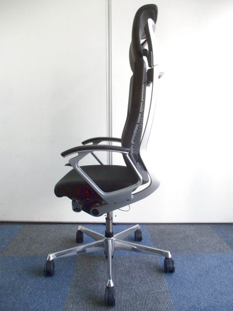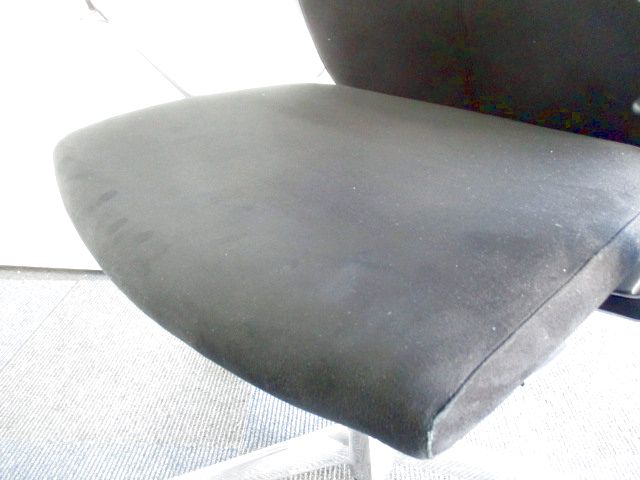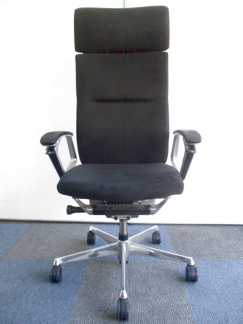 ※ひじ掛け部分に使用感ありのため、特価!【オカムラの最上級モデル!高級感と機能性を融合させたチェア!】■ハイバック 肘付き 背・座クロス張地(スエード調) 固定肘 ※サイド剥がれ有り ランバーサポート付き ブラック/オカムラ/デューク