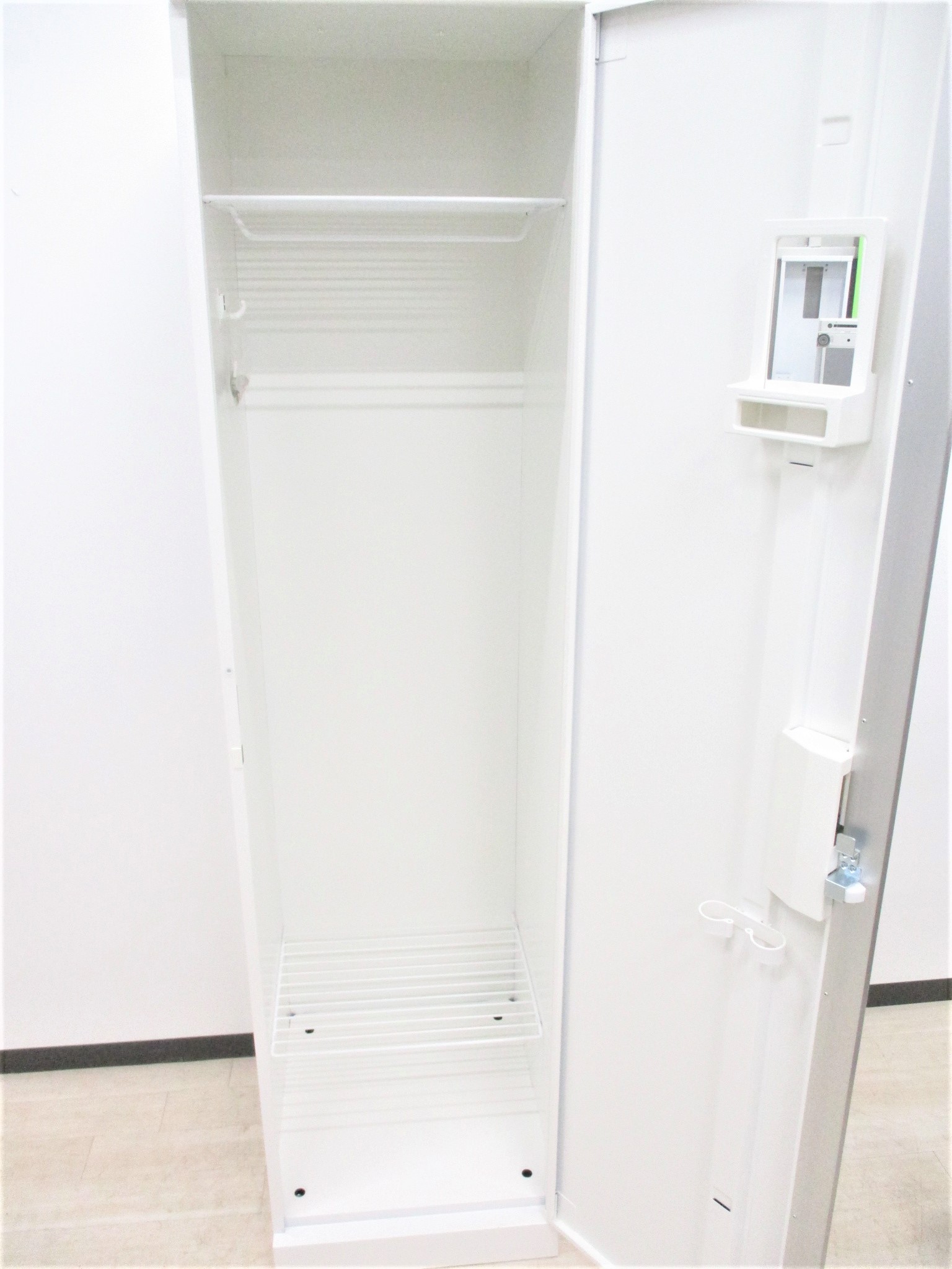 【シャープなデザインの1人用ホワイトロッカー!掃除用具入れにも!】■オカムラ(okamura) SWシリーズ 1人用更衣ロッカー ■W450×D515×H1790mm ■ネームプレートなし ■シリンダー錠 ■ホワイト【2602】弊社使用欄【A01058269】