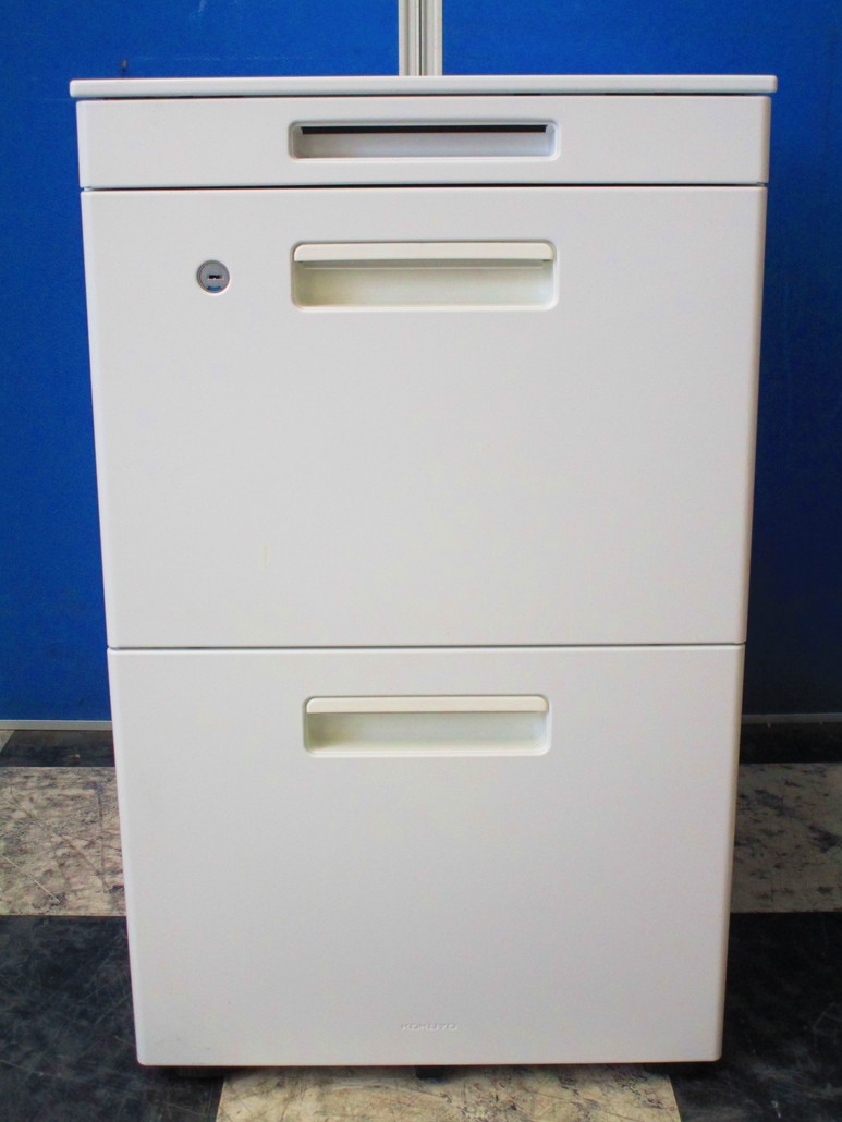 フリーアドレスデスク用のワゴンでA4ファイルが2段目、3段目に入ることが特徴です。