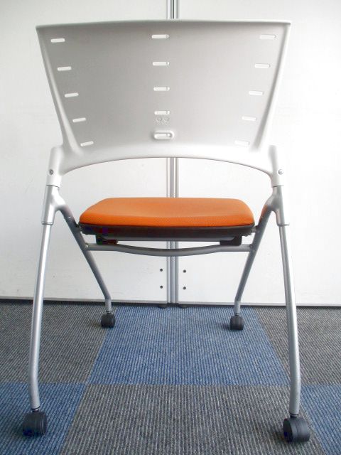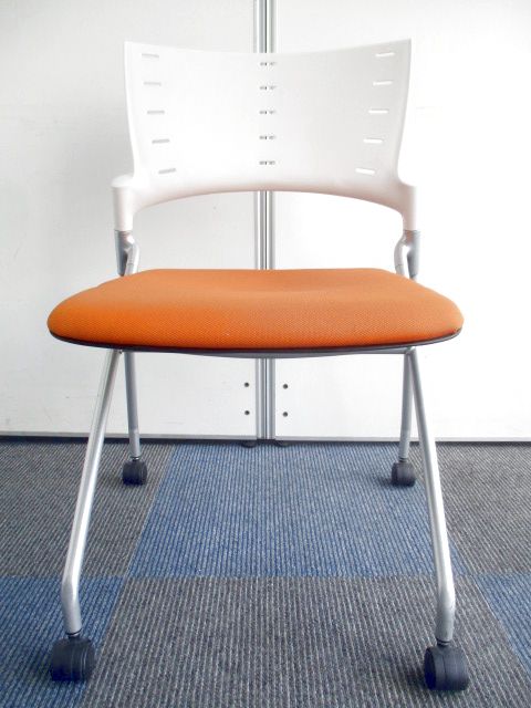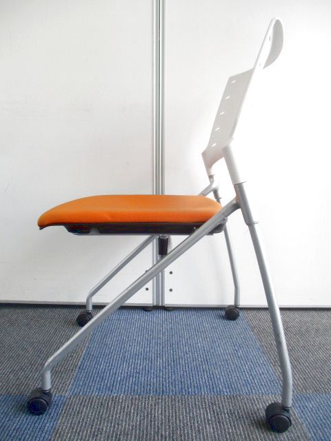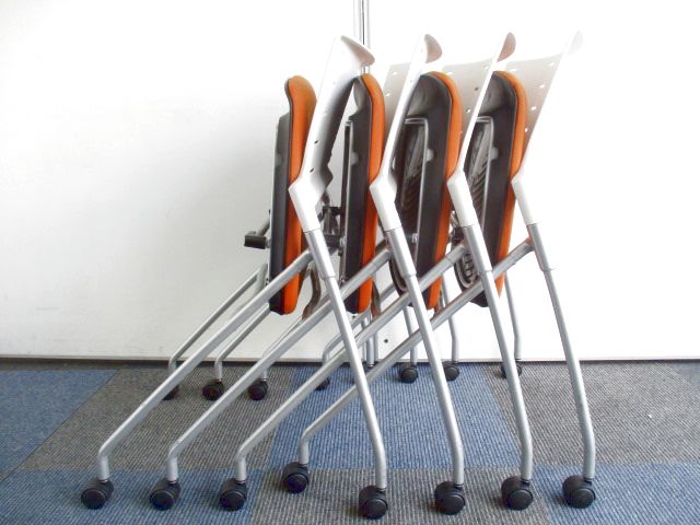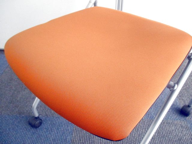 【POPなオレンジ色】会議室が明るくなります!【座面跳ね上げ収納タイプ】- 千葉店