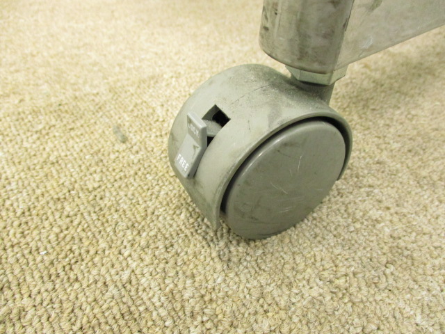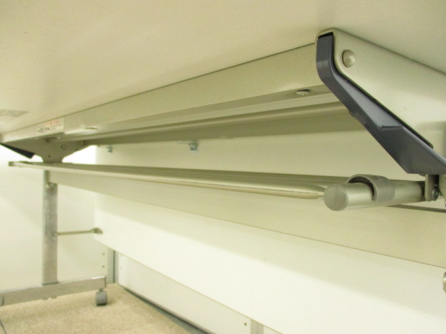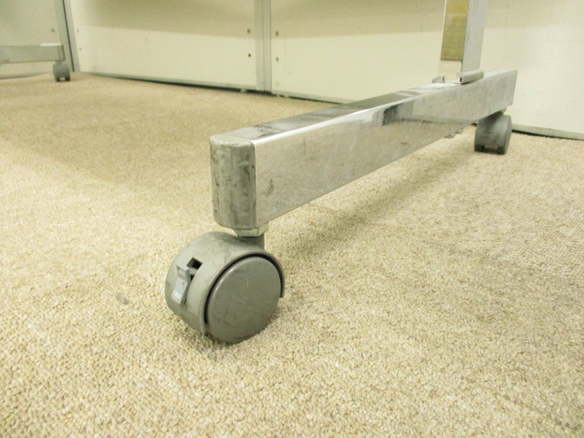 - 一部不具合あり天板歪み、アジャスター無し、キャスター使用不可ようなそのテーブルの本来の効用を果たすための機能以外の一部が使用不可な状態。(例、キャスターロッ ク機能使用不可、棚板無し等がある。)