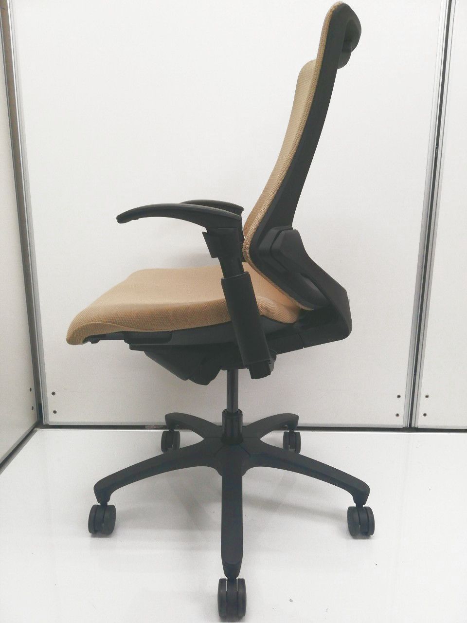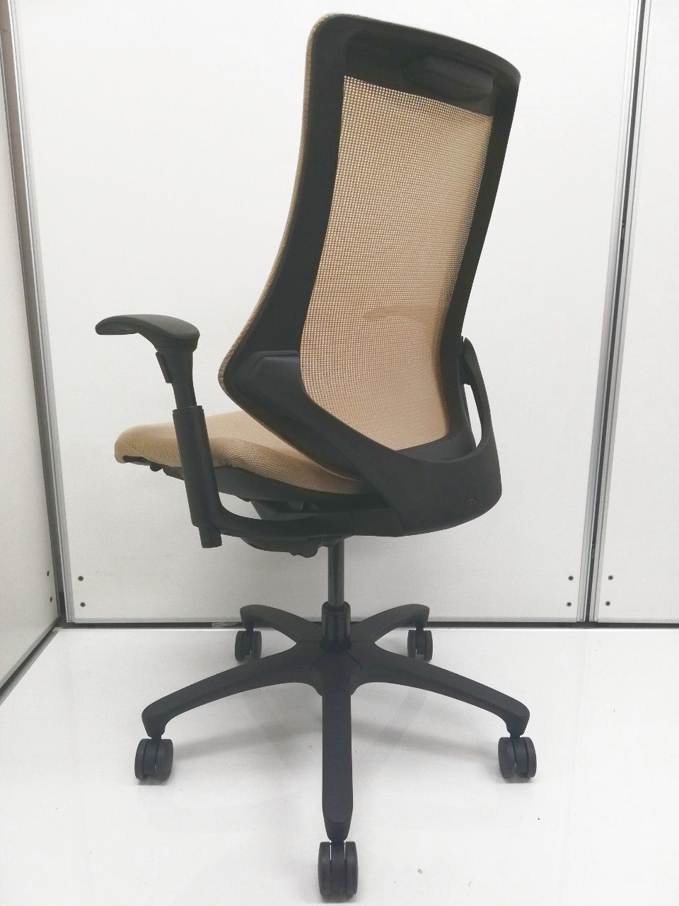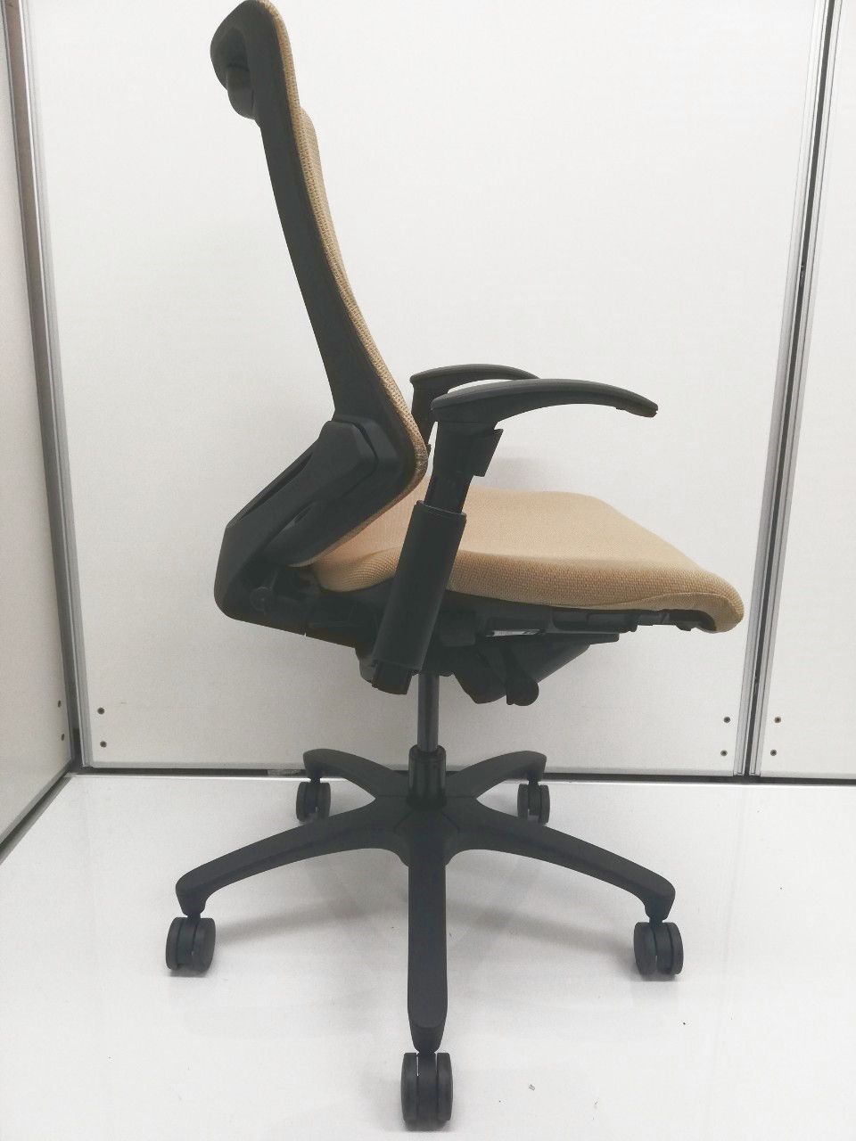 【作業性を考えたチェア!】着座中の作業性を良くするために考えられたデザインになっております!カラーはサンドイエローです。サーキュラーバリューCO2削減量の算出について