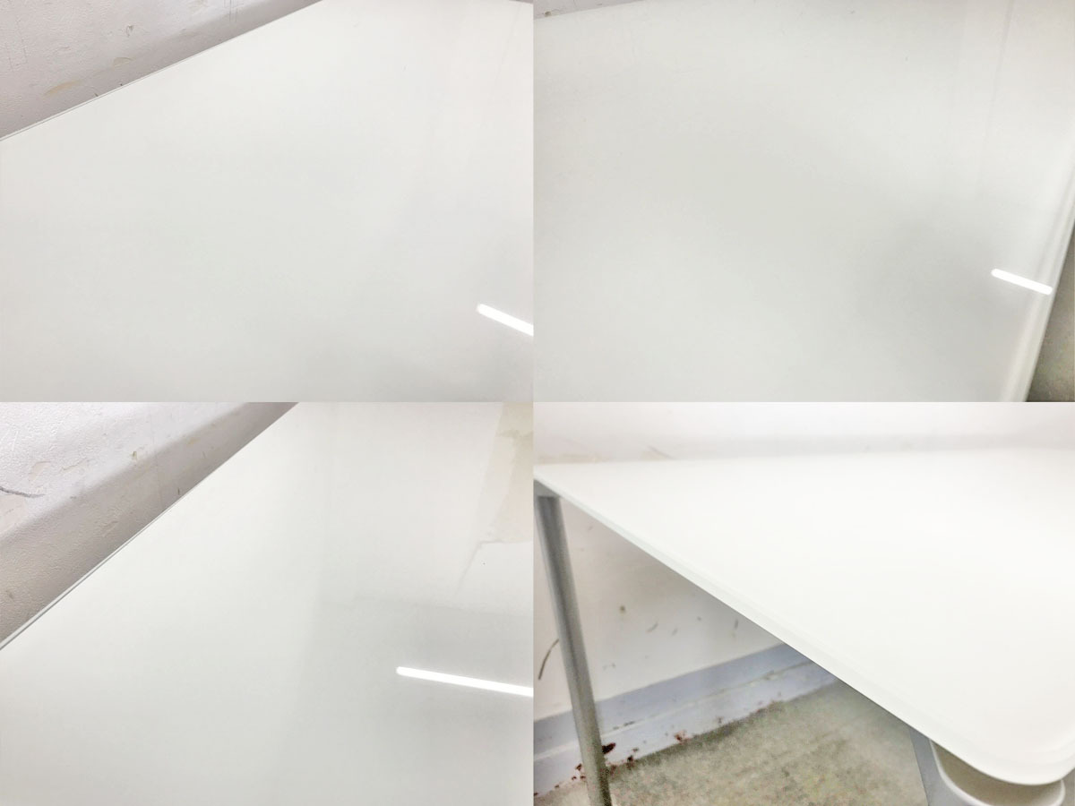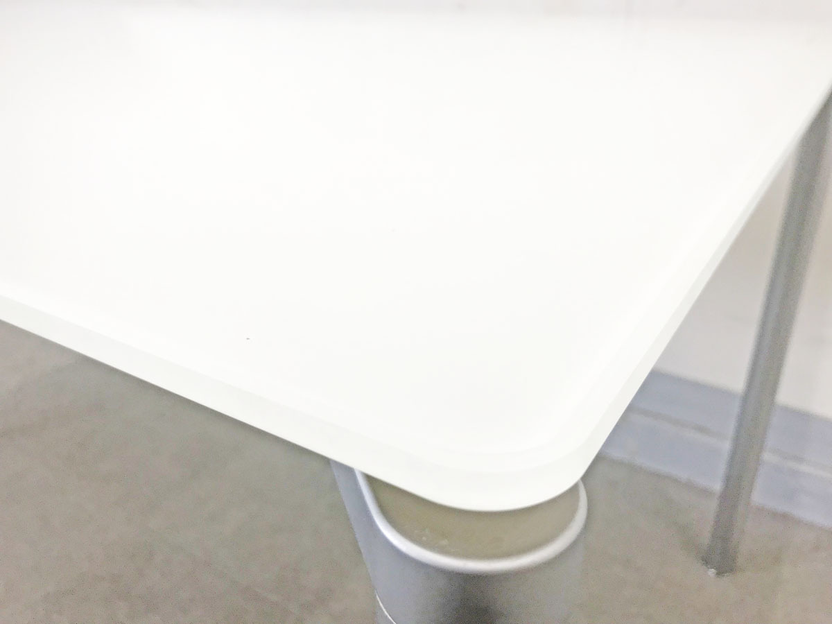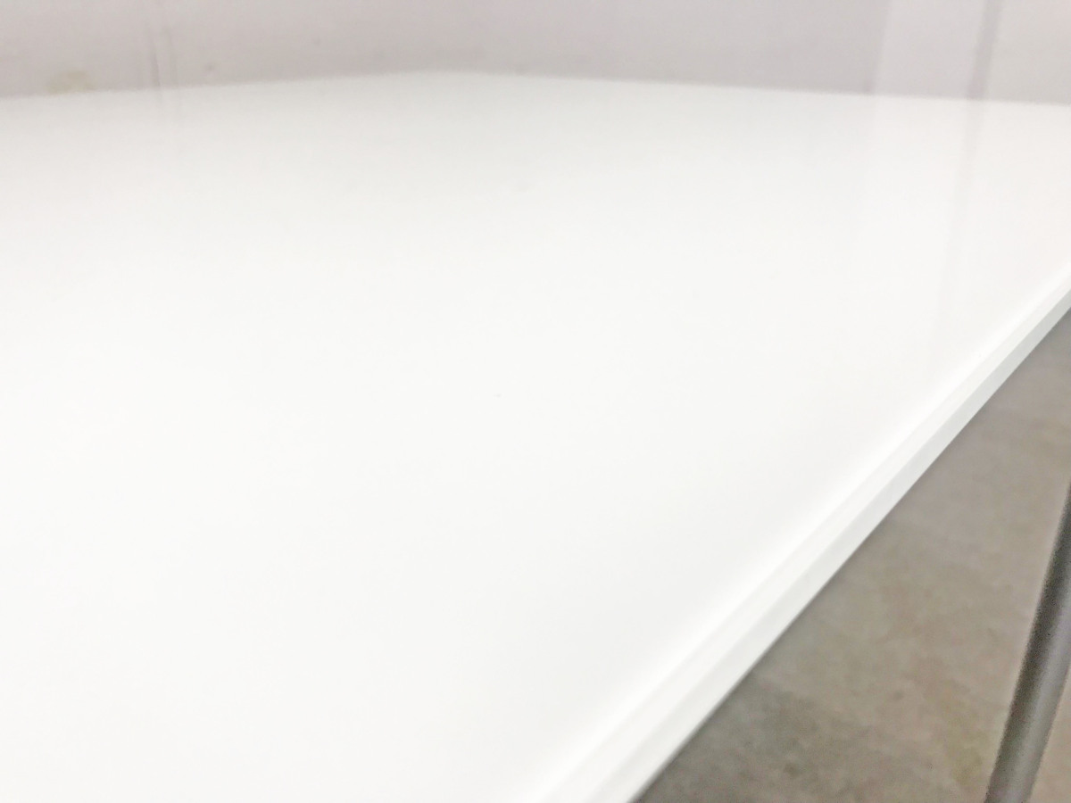 ホワイトラミネートのトップにクローム仕上げのスチール製の脚部を組み合わせた、 シンプルなデザインながら存在感があります。