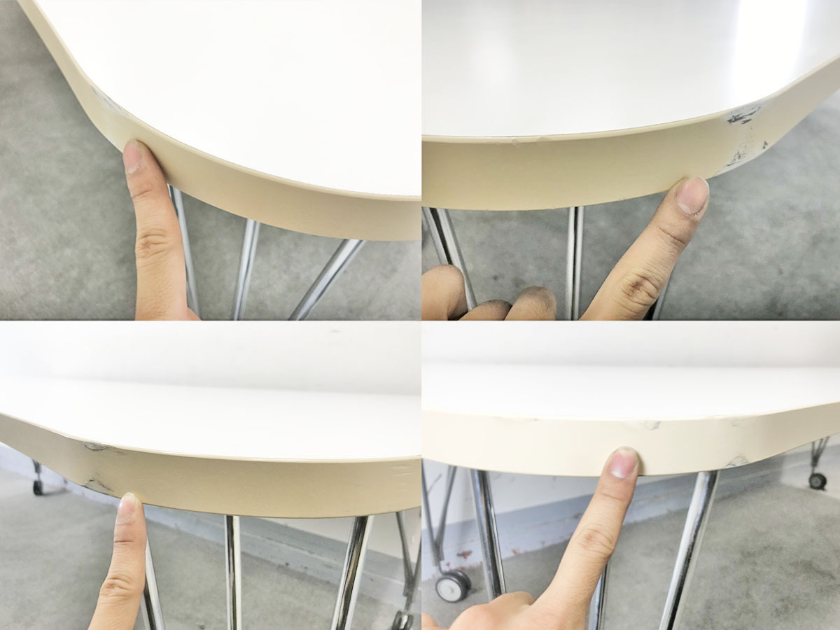 - 壊れている天板歪み、アジャスター無し、キャスター使用不可のようにそのテーブルの本来の効用を果たすための機能に不具合がある。