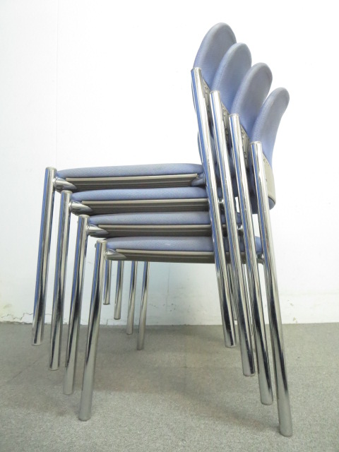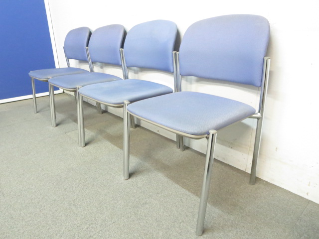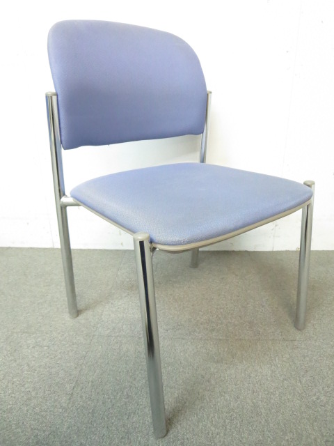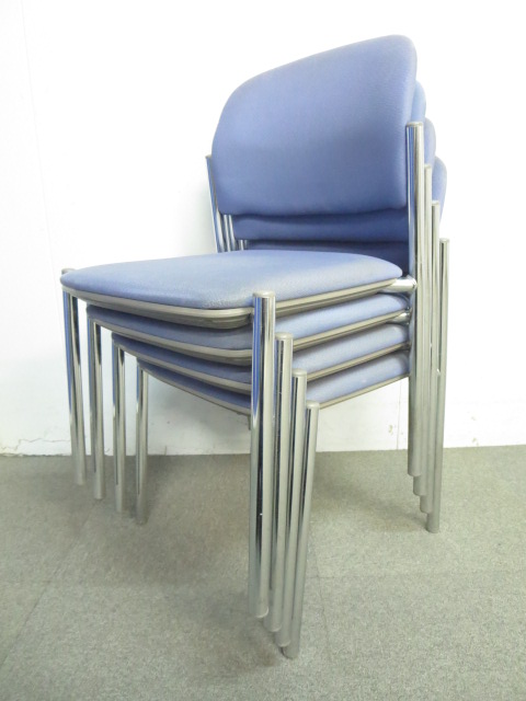【厚めのクッションが人気!】■オカムラ製 スタッキングチェア ブルー- 川崎店
