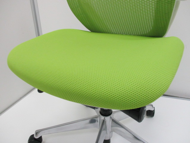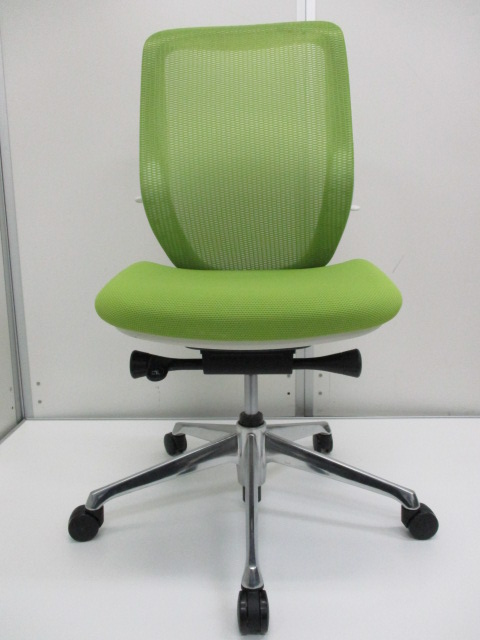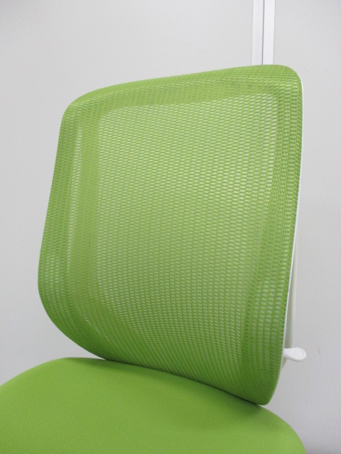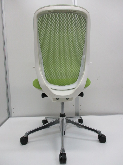 オカムラ製 シルフィ ライムグリーン ブラックフレーム 背面メッシュ ハイバック 樹脂脚 前傾チルト機能付き! オカムラ製品で最も人気を集める高機能メッシュチェア! 肘無しハイバックチェア!!