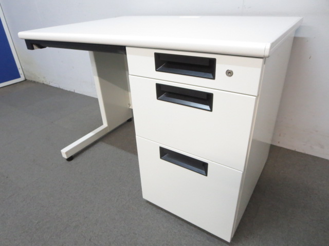 【収納とワークスペースの両立!コンパクトな片袖机が入荷!】プラス(PLUS) 片袖机 横幅1000㎜ ホワイト【AD】