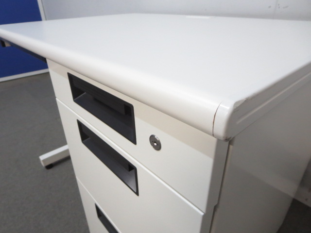 プラス製 ホワイトカラーのオフィスデスクです。