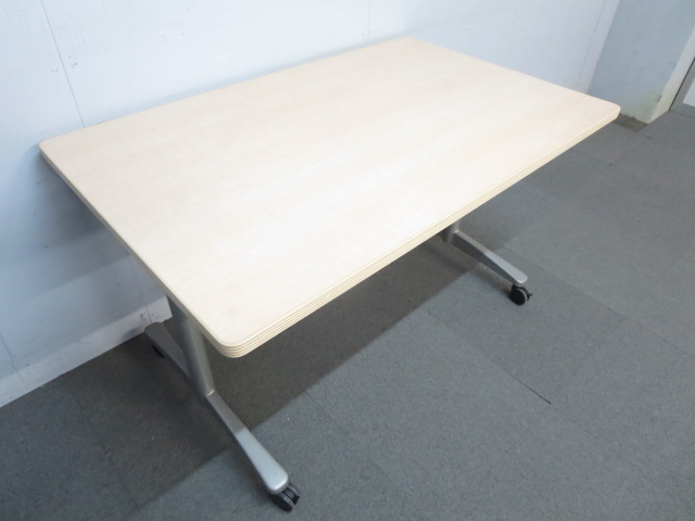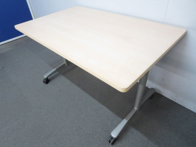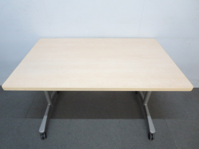 【フレキシブルに使えるキャスター付!】■ミーティングテーブル W1200mm 木目柄ナチュラルカラー- 川崎店