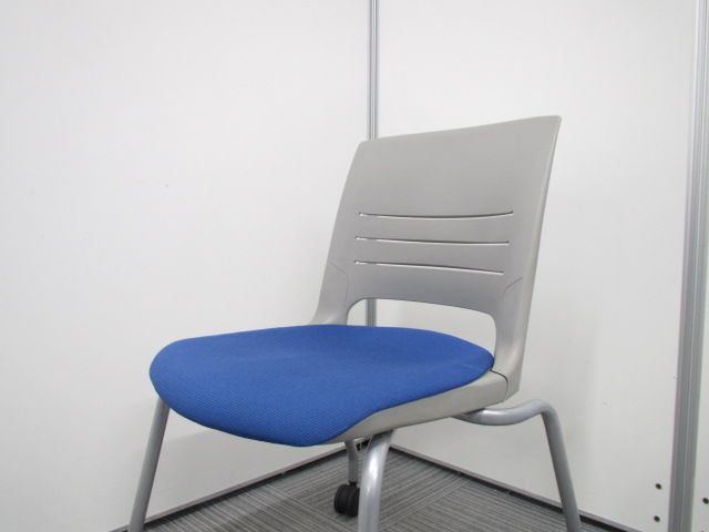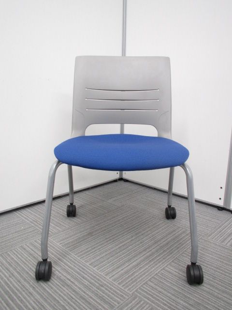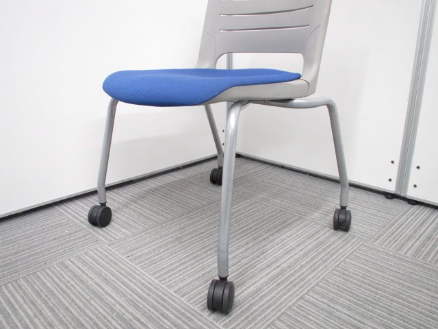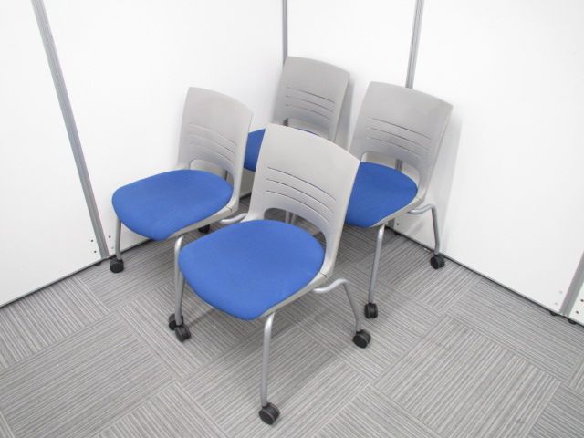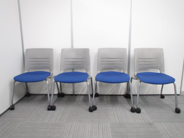 【4脚セット!】定番のブルー椅子|収納が便利でオフィスに最適な商品です!- 在庫数