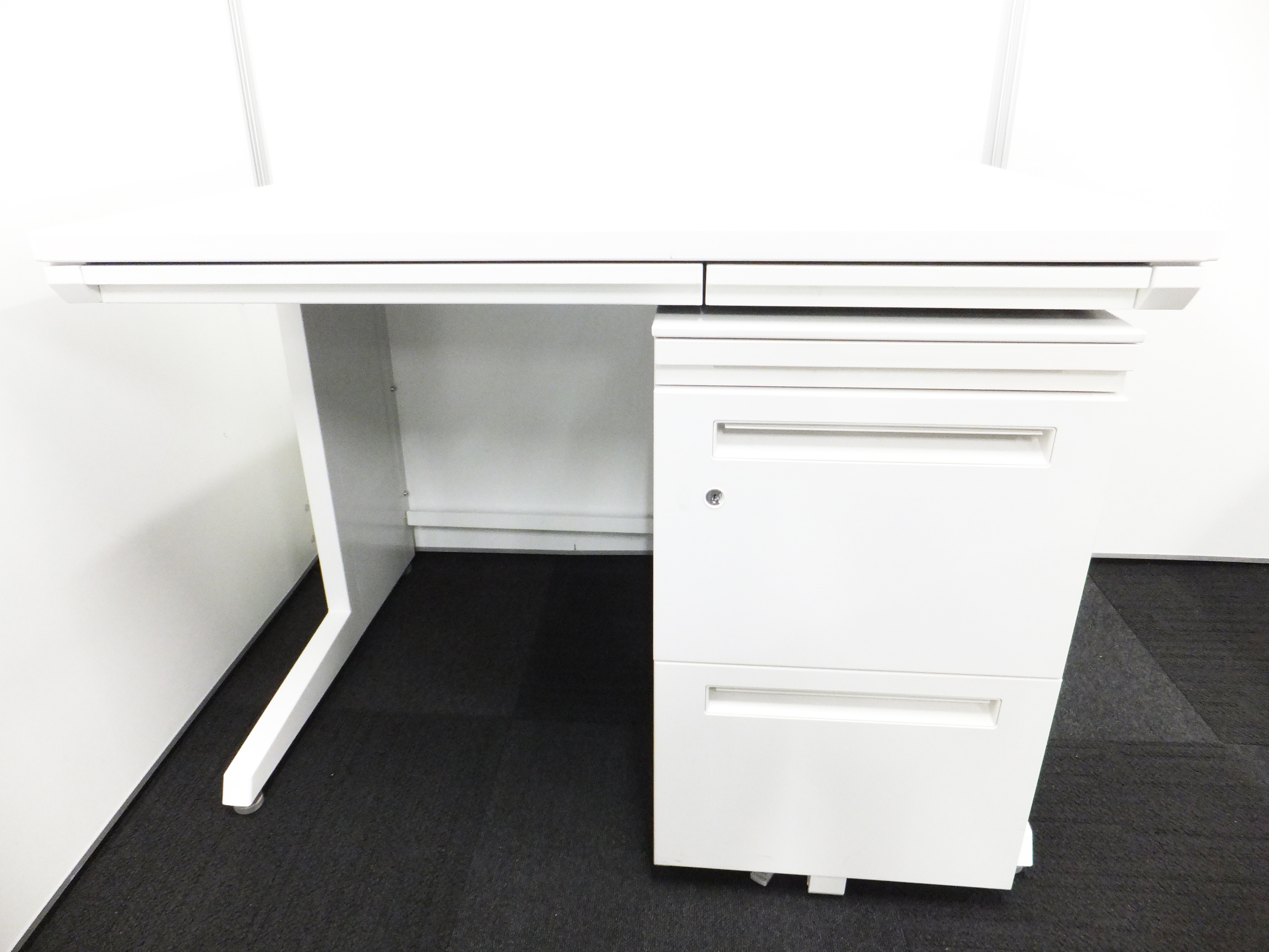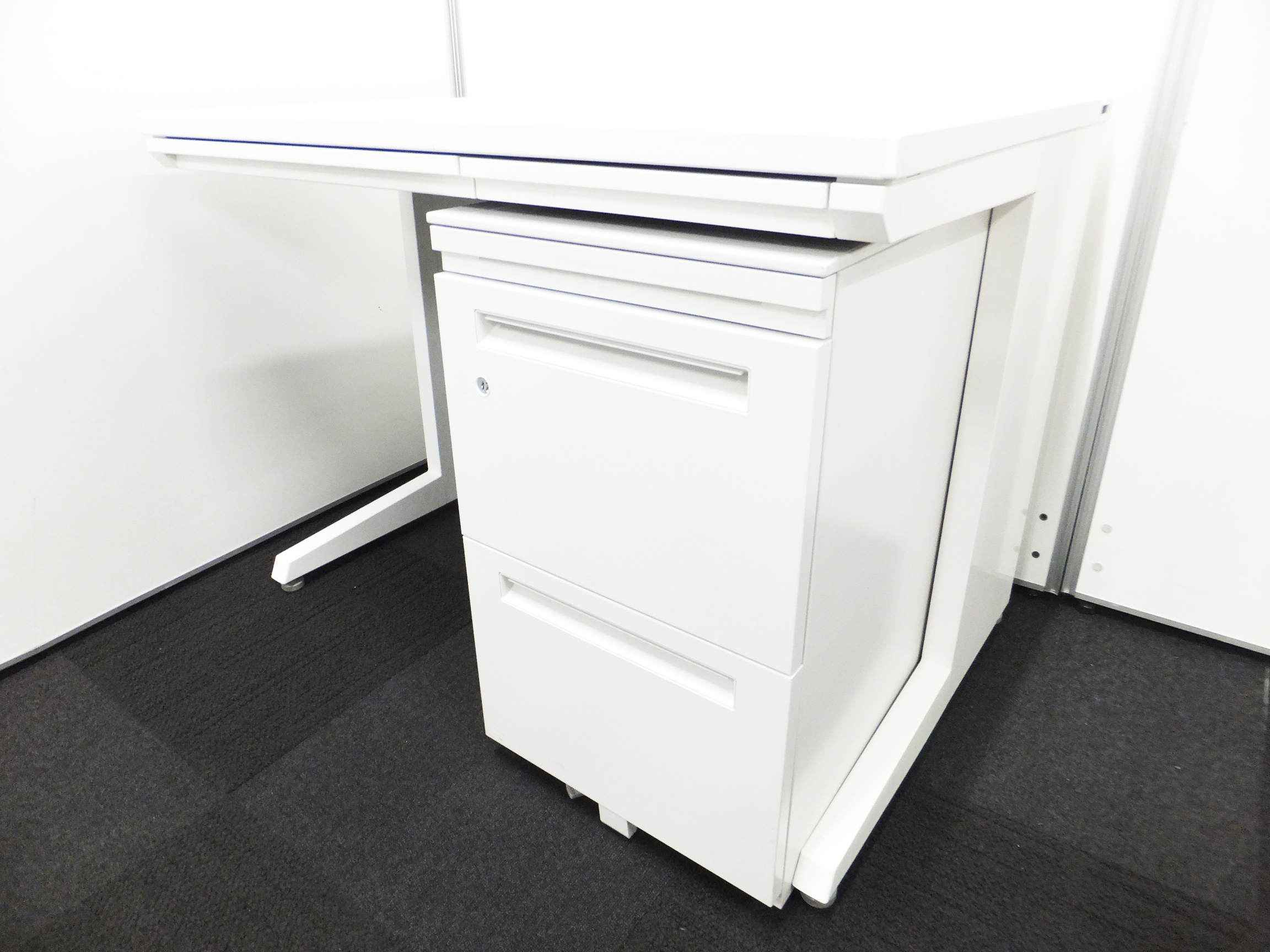 【ワゴンが動くのでレイアウト変更にも最適】ホワイトカラーの片袖机タイプとして使えるセット商品です!- 立川・八王子店