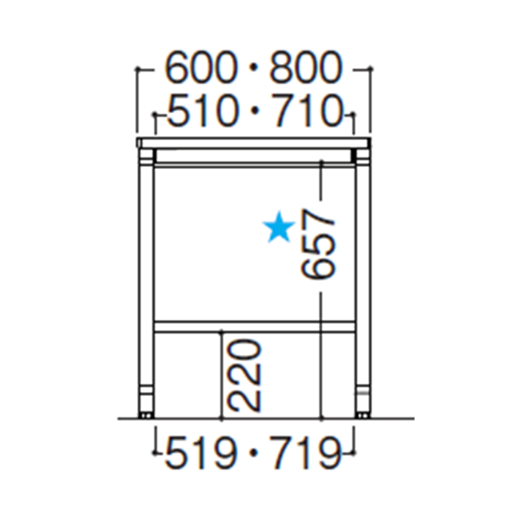 *引き出しなしのタイプで画像の★の寸法は695mmです。