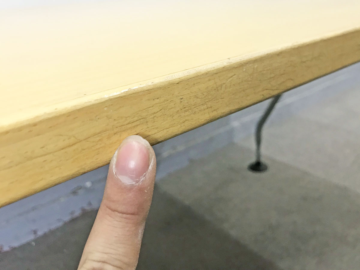 - 壊れている天板歪み、アジャスター無し、キャスター使用不可のようにそのテーブルの本来の効用を果たすための機能に不具合がある。
