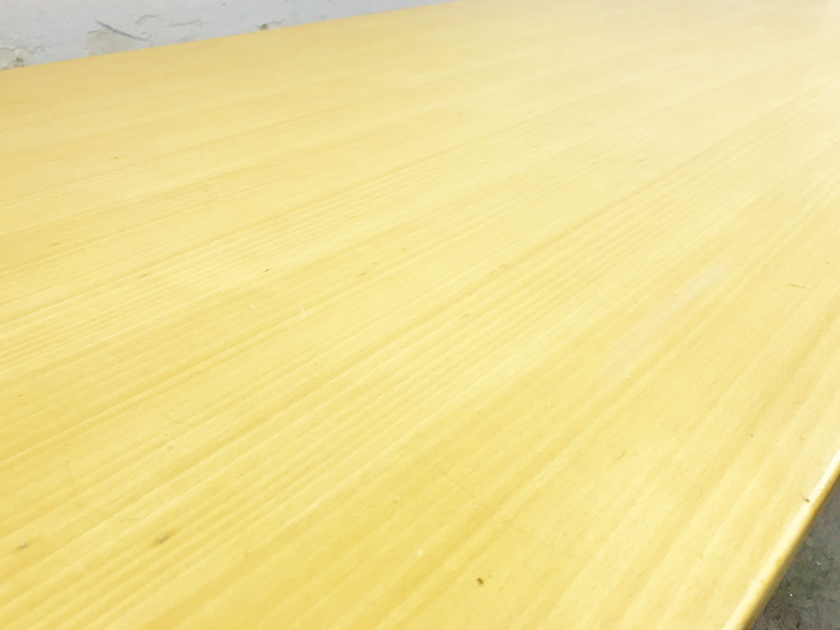 - かなり強い濃い黄ばみ・変色が商品全体にある。(例、天板、幕板、棚板、サイド部分、脚部等にある。)